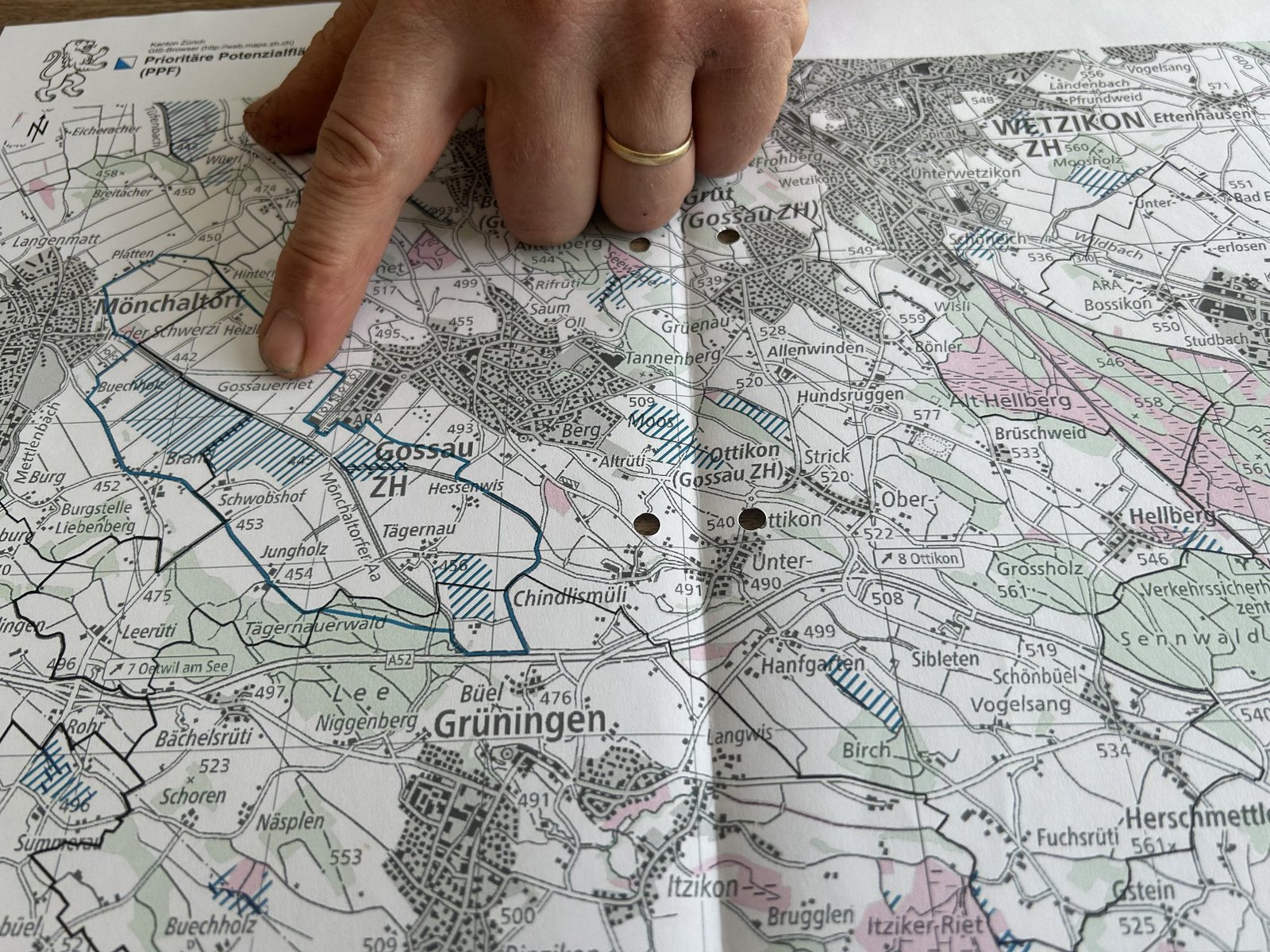 «So etwas wollen wir verhindern. Aber wir sind nicht gegen den Naturschutz», sagt er und verweist darauf, dass der Kanton Zürich mit 16 % Ökoausgleich weit über den erforderlichen 7 % liege. Auch stellt ein Landwirt in Gossau 5 ha Fläche für das Kiebitzprojekt von Birdlife zurVerfügung. Dafür schliesst die Flurgenossenschaft die Drainagenleitungen, so haben die Kiebitze Nassstandorte.