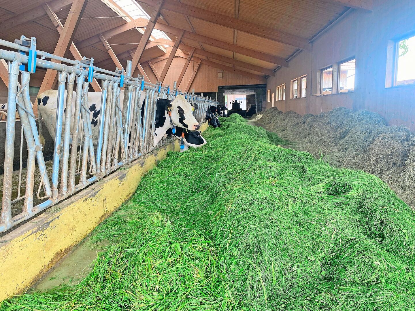 Der Hofrundgang führt zum Gemüsegarten des Hofs. Ihr Ziel sei, von Mitte April bis in den Spätherbst Gemüse und Salat für den Eigenbedarf zu ernten, sagt die Bäuerin. Der Kuhstall etwas weiter oben am Hang gehört ebenfalls zu ihrem Arbeitsbereich. «Ich hatte in all den Jahren noch nie kein Kalb zum Tränken», sagt sie und streicht ihrer Lieblingskuh Biggi kurz über den Kopf.