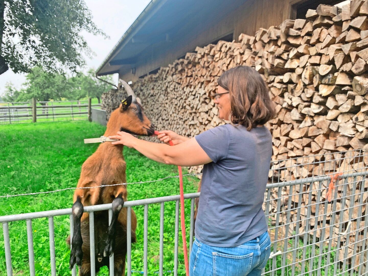 Neben dem Stall grasen die beiden kastrierten Geissböcke Caruso und Benedetto. Sie habe eigentlich auf dem Hof Geissen-Trekking anbieten wollen und über dieses Thema ihres Businessplan für den Abschluss als dipl. Bäuerin HFP geschrieben, erzählt Sandra Meyer-Huwyler. Doch mit Kindern, Haushalt, Hof und Ämtern fehlt ihr die Zeit. «Vielleicht später einmal», meint sie zum Abschied. Denn am Abend steht eine Gemeindeversammlung auf dem Programm.