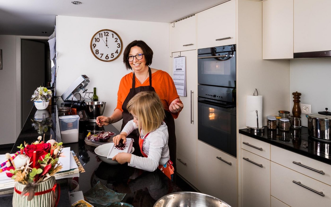 Noch steht die Entscheidung bevor, wer dieses Jahr die Landfrauenküche gewinnt. Doch wenn es nach Elias, Alice und Helen ginge, bekäme wohl ihr Vater den ersten Platz bei der Landfrauenküche: «Die Kinder sagen, Dädi kocht besser als Mami», sagt Cathrin Iten und lacht. Weil wenn er kocht, gibt’s alte Brotscheiben in Butter gebraten mit Zucker darüber. Cathrin Iten ist aber froh, muss sie nicht vorkochen, ist der Mann mal alleine: «Dann gibt’s halt Käsehörnli, das ist ja auch okay! Da bin ich relativ pragmatisch», sagt die fröhliche Landfrau.