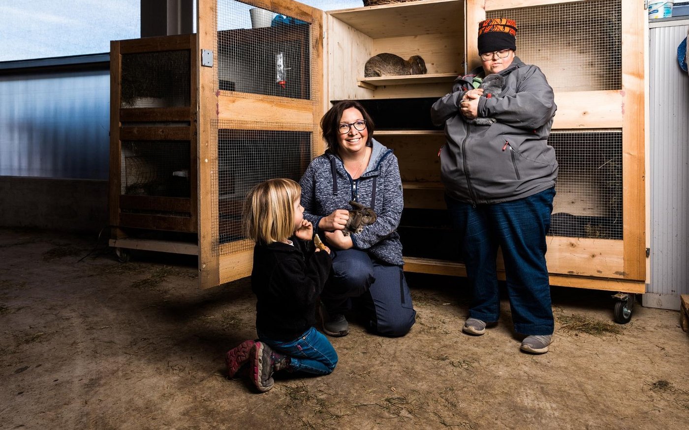Aufgewachsen ist Cathrin Iten in einer Blockwohnung in Steinhausen. Sie ist gelernte Geomatikerin (Vermessungszeichnerin) und ging früher viel auf Reisen, auch für längere Zeit. Als sie ihren jetzigen Mann kennenlernte und auf den Hof kam, haben sie das Betreuungsangebot zunächst in Form eines Mittagstischs gestartet. Bis zum dritten Kind hat sie jeweils einen Tag in der Woche weiter gearbeitet. 2014, als die mittlere Tochter drei Monate alt war, gab sie die Arbeit für den Fachausweis Bäuerin ab.