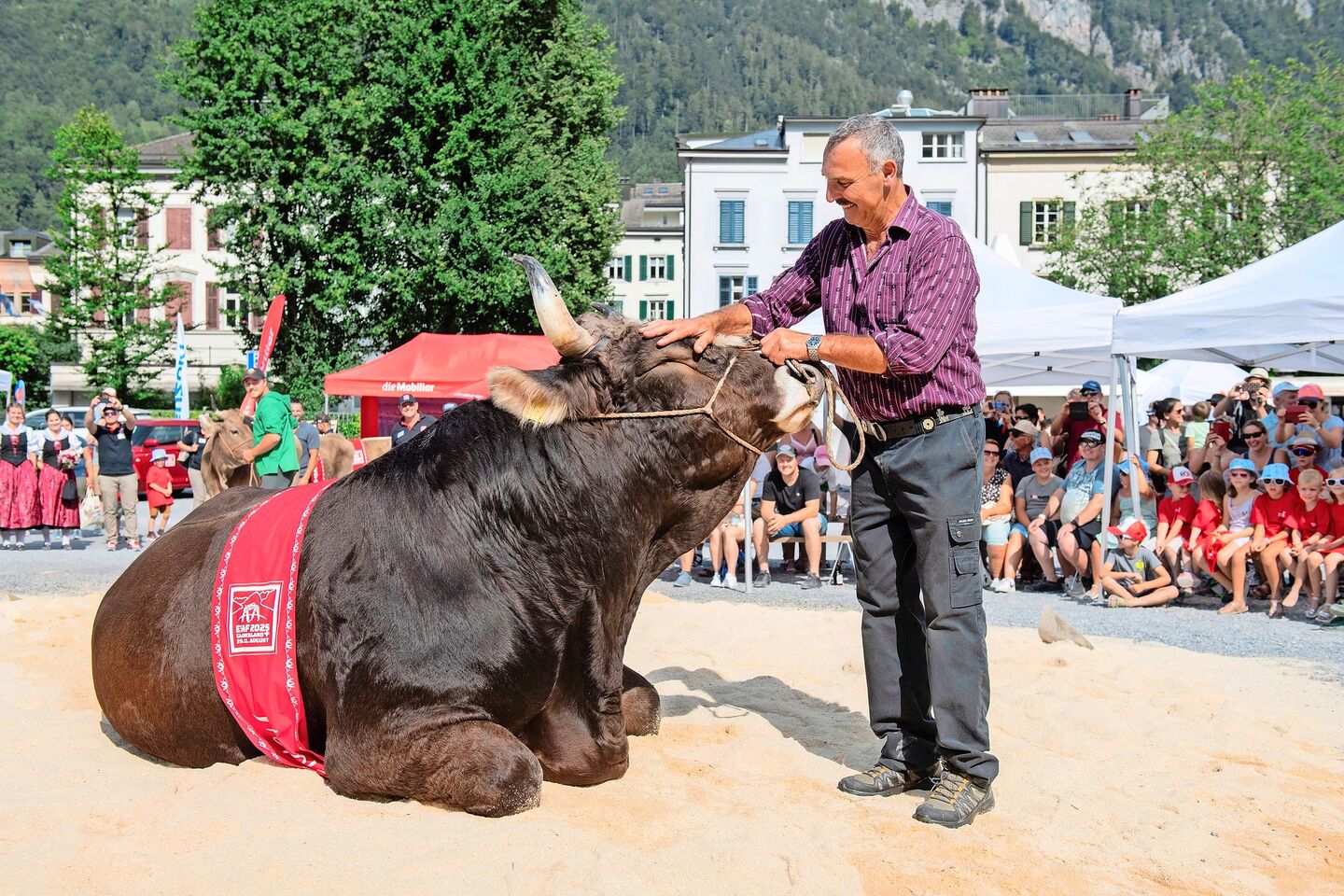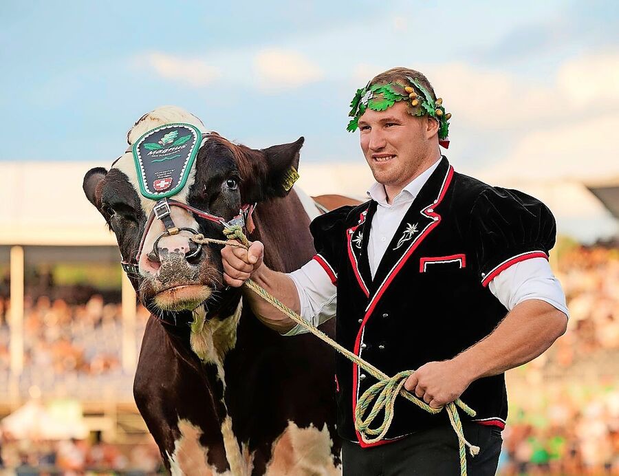 Dass nach dem Schlussgang neben dem Schwingerkönig alle Augen auf Muni Zibu gerichtet sein werden, wird den gut dreieinhalbjährigen Stier nicht stören. «Zibu ist ein sehr ruhiges Tier und war in der Vergangenheit schon oft an Anlässen, wo er vor vielen Leuten präsentiert wurde», erklärt Züchter und Besitzer Bert Horner. An einer Veranstaltung sei Zibu sogar von einer herumschwirrenden Drohne gefilmt wurden, auch das habe den Muni nicht unruhig gemacht.