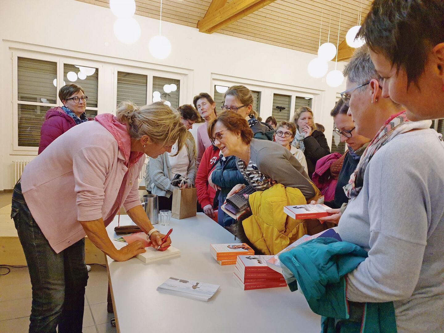 Ein erstes Ziel nach dem Referat war für viele Landfrauen Evelyne Binsacks Büchertisch, den sie zügig leer kauften.