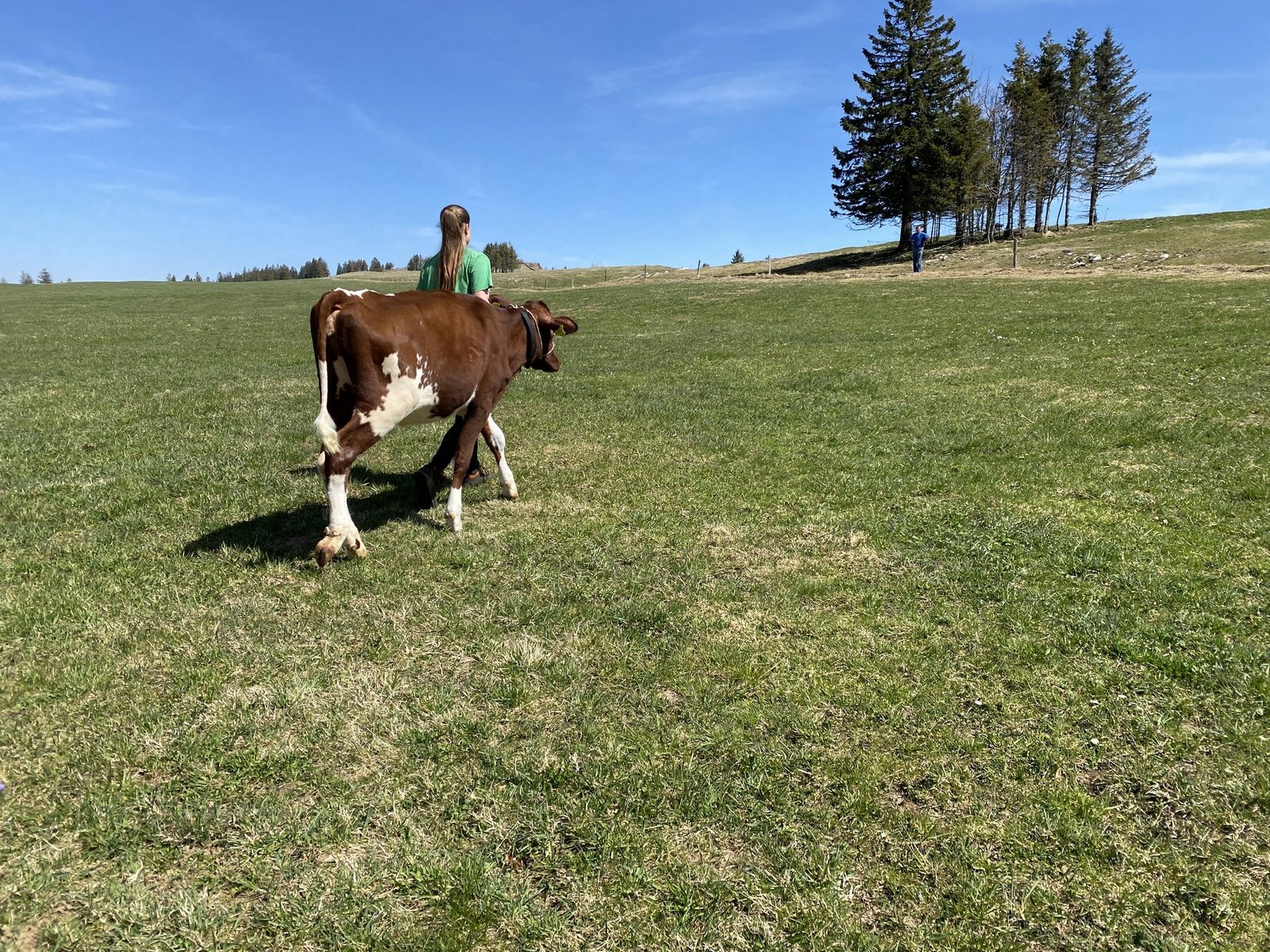 Das ganzjährige Bergleben entspricht der gelernten Tiermedizinischen Praxisassistentin (TPA) und Absolventin der Bäuerinnenschule Gurtnellen, da ihr Alltag vom Umgang mit Tieren und Gästen geprägt ist. «Dank meinen Erfahrungen als TPA erkenne ich Anzeichen von Krankheiten frühzeitig und kann so reagieren, bevor ein Tierarztbesuch unumgänglich wird», schildert Fabienne Kaufmann. Ausserdem weiss sie genau, wie wertvoll Zahmheit gerade für medizinische Behandlungen ist. Entsprechend will sie sich die junge Frau nicht auf ein bestimmtes Lieblingstier festlegen, sondern mag alles, was «zahm und umgänglich ist». Damit könne man am besten arbeiten. Ein gutes Beispiel ist ihr eigenes Gusti mit dem Namen Sweet, das sich ohne Störrigkeit zum Fotoshooting mitten auf die Weide führen lässt.