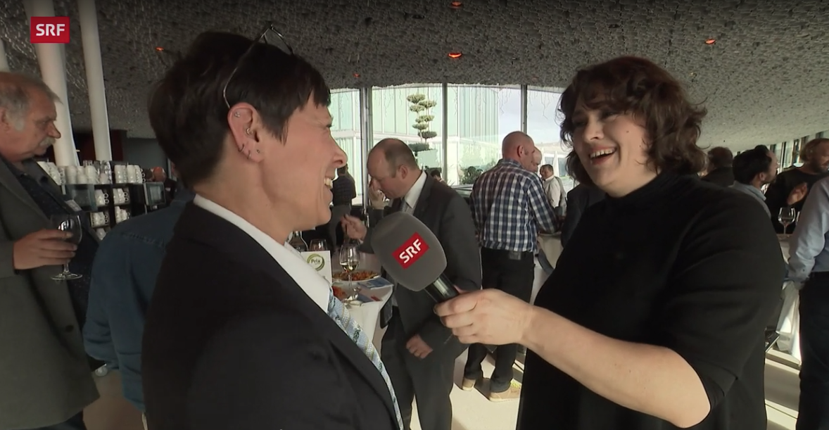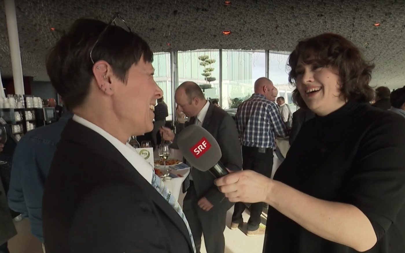 Auch die Präsidentin der Schweizer Bäuerinnen und Landfrauen, Anne Challandes, ist witzig. Auf jeden Fall hatte sie die spritzigsten Antworten auf die bitterbösen Fragen von Patti Basler parat. Basler, Bauerntochter aus dem Aargau und Komikerin, amtete an der Delegiertenversammlung des Schweizer Bauernverbands als Aussenreporterin für die SRF-Satiresendung «Deville». Diese liess Ende November den Bauernstand, inklusive den Verlag der BauernZeitung, nicht gerade im besten Licht erstrahlen. Ausser eben Anne Challandes. Auf Baslers Frage: «Wenn eine Bäuerin für ihren Mann kocht, gilt dies schon als Nutztierfütterung?», meinte Challandes: «Nein, ausser der Bauer ist ein Esel.»