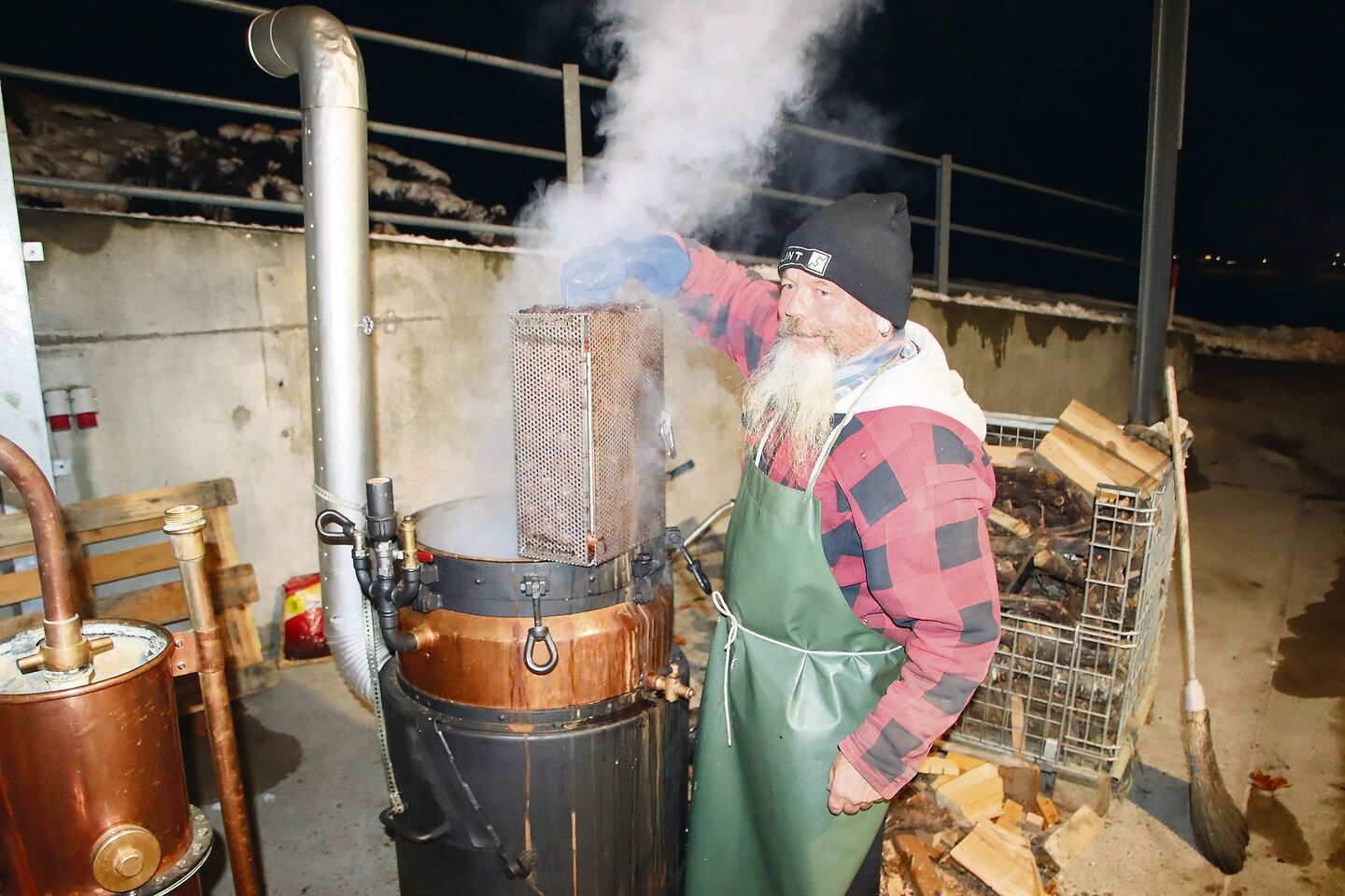 Auch in Ossingen auf dem Weingut Wiesendanger hält man die vorweihnächtliche Tradition hoch. «Wir laden jeweils in der ersten Adventswoche zu unserer Weihnachtsdegustation ein, wobei wir abwechslungsweise Fondue oder Treberwurst servieren», erklärte Hans Wiesendanger. In diesem Jahr war die Wurst an der Reihe, die ihren Ursprung in der Westschweiz hat. Auf dem Ossinger Weingut wurde sie in einer Brennblase im Traubentrester gegart, wodurch sie ihr spezielles Aroma erhält. Serviert wurde die Treberwurst im ehemaligen Wasserreservoir – heute «Vinoir» genannt.
