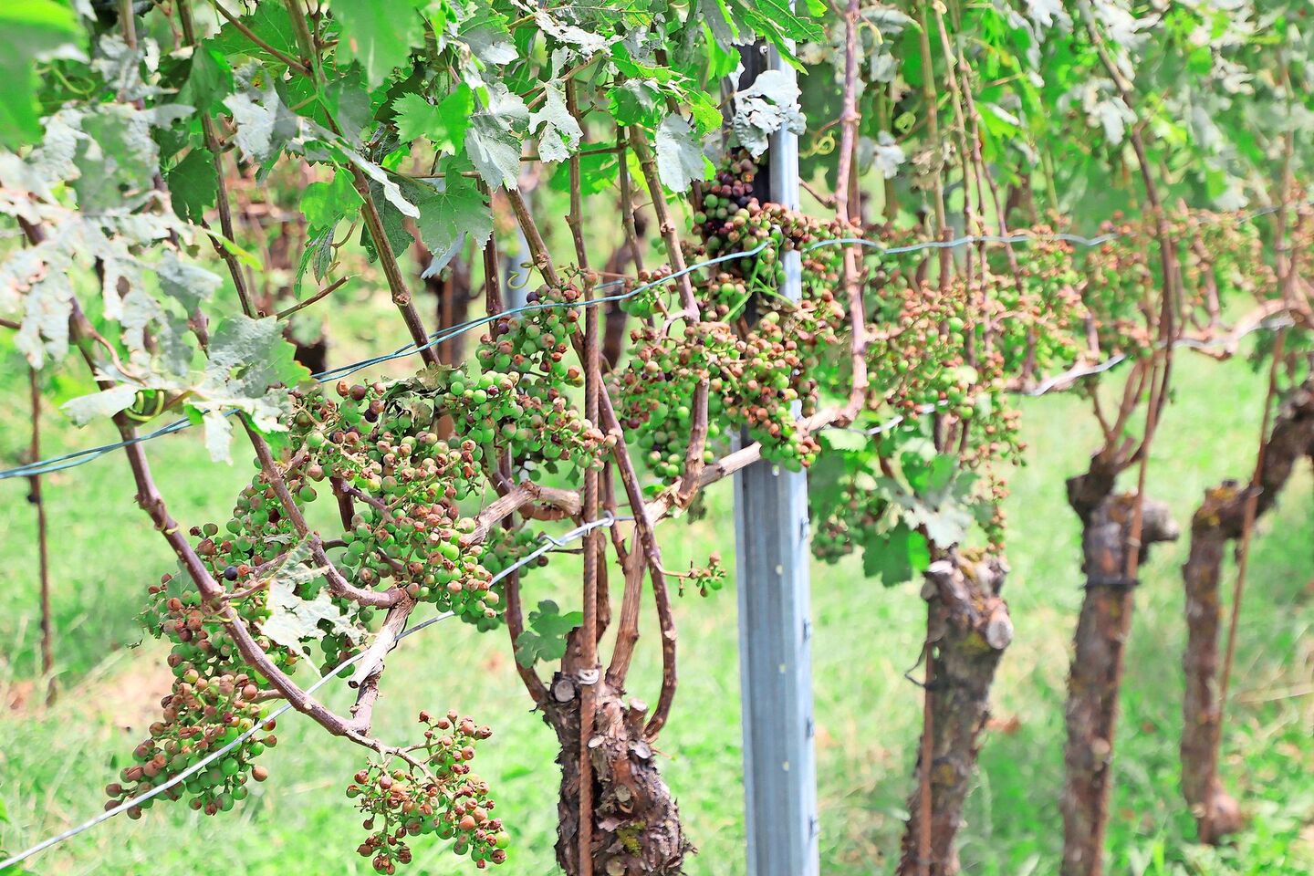 «Wir haben eher scheibenähnliche Hagelkörner festgestellt», erklärten beispielsweise die Gächlinger Rebleute Maya und Hanspeter Kramer bei ihrem Rebhaus in der Gächlinger Reblage «Schlemmwäg». Sie nahmen am Sonntag nochmals einen Augenschein in ihren eigenen Reben. Auch bei ihnen wiesen diese starke Schäden auf.