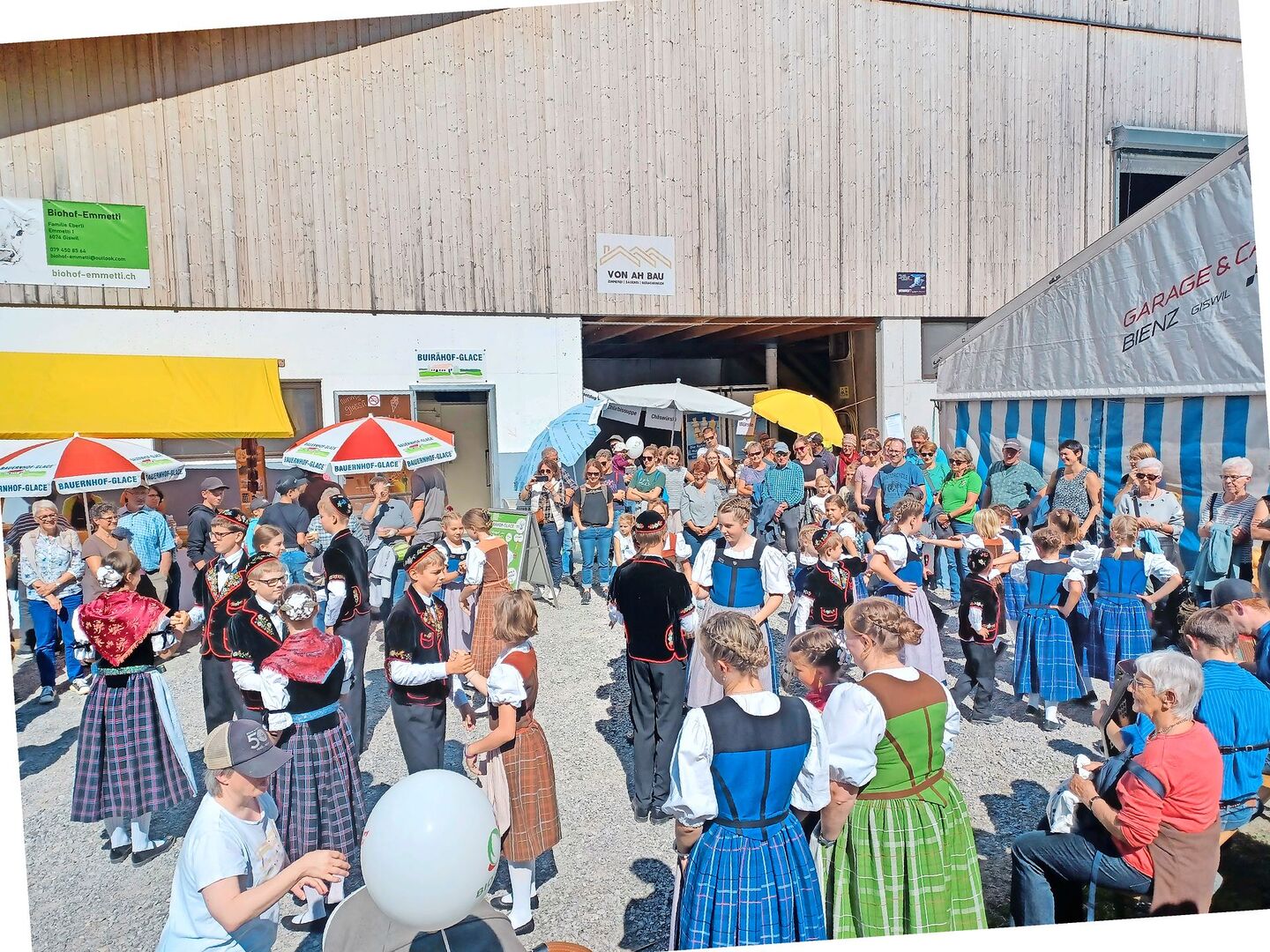 Mit Ländlermusikanten, Kinder- und Jugendtrachtentanzgruppe und dem Jungjodler Hannes Berchtold war für Unterhaltung gesorgt. Gestärkt wurde sich in der Festwirtschaft, wobei es am hofeigenen Glace kaum ein Vorbeikommen gab.