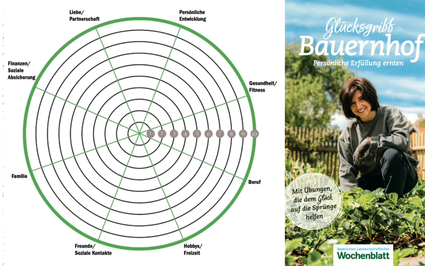 Manchmal weiss man gar nicht so recht, wo genau man gerade gut unterwegs ist und wo es harzt. Dass man zum Beispiel nur mit dem Ehepartner zankt, weil man zu viele Termine am Hals hat, und nicht, weil es in der Beziehung selbst schwierig ist. Vor lauter Aufgaben auf dem Betrieb oder im Ehrenamt bleibt das Persönliche, der Mensch, manchmal auf der Strecke – gerade auch in bäuerlichen Familien. Ein persönliches «Glücksprofil» zu erstellen, kann helfen, etwas klarer zu sehen. Eine Variante davon sehen Sie auf dem Bild über diesem Text.