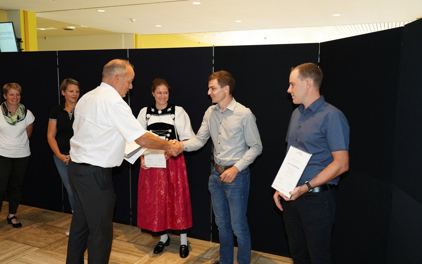 Die Motivation, noch einmal die Schulbank zu drücken, sei deshalb besonders löblich, so die Leiterin von Agriprof, Petra Sieghart. Beide Frauen arbeiten auf ihrem jeweiligen Milchviehbetrieb in der den Bergzonen II (Jasmin Mazenauer) und III (Myrtha Fischli).