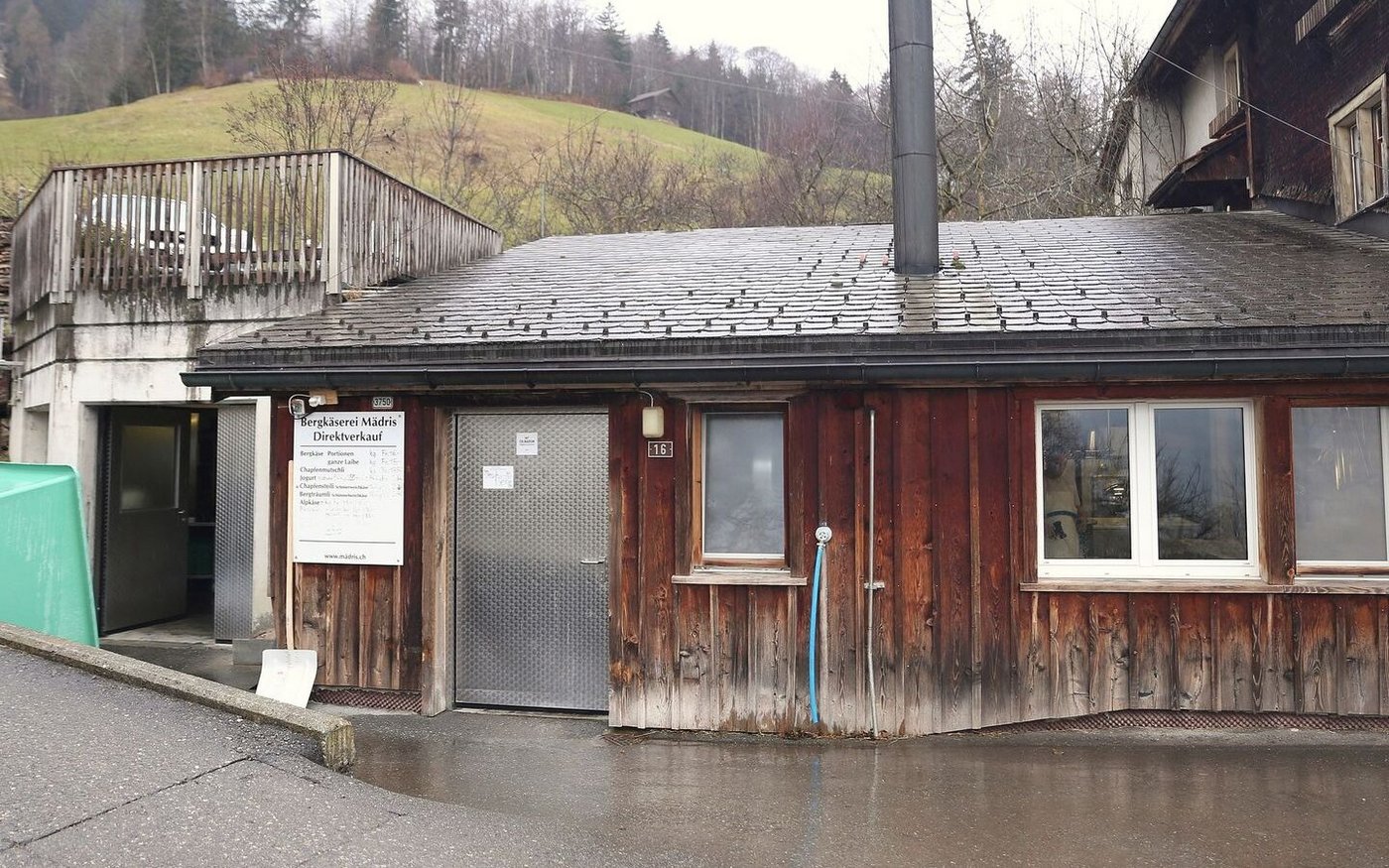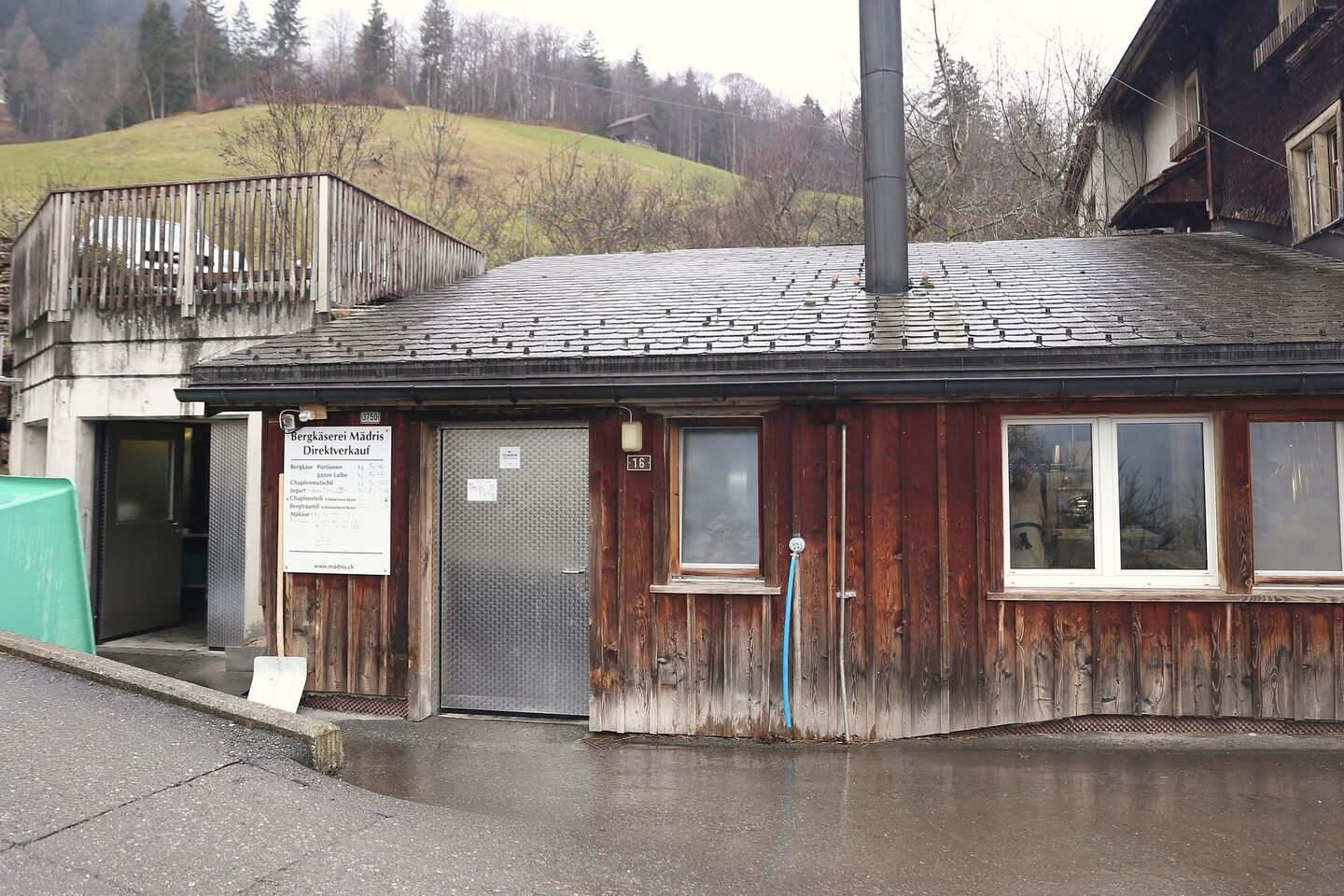Angeschrieben ist die Bergkäserei Mädris zwar an mehreren Wegkreuzungen, das Käsereigebäude dann zu finden, ist allerdings gar nicht so einfach. Das unscheinbare Gebäude steht fast etwas versteckt auf der Liegenschaft von Hannes Ackermann, der im Jahr 2008 erstellte Käsekeller befindet sich unter dem Boden auf der Parzelle seines Nachbarn.