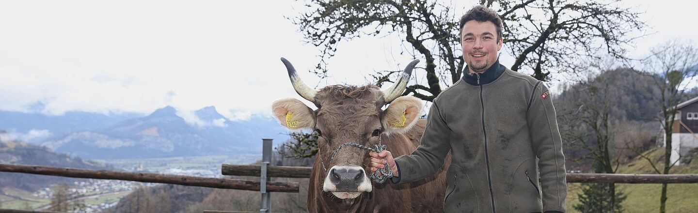 Hannes Ackermann züchtet Original Braunvieh, eine Rasse, die nicht nur auf den Betrieb, sondern auch zum Betriebsleiter selber passt: Ruhig, überlegt und unaufgeregt sind Attribute, die zu Vieh und Züchter des Hofes Bünten passen. Im Stall des 32-jährigen Landwirts stehen heute Tiere, deren Abstammung über 14 Generationen bis zur Kuh Reisi nachverfolgt werden kann.