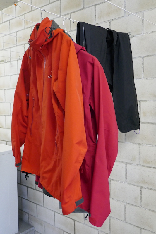 Imprägnierung: Perlt das Wasser nicht mehr von der Oberfläche ab, empfiehlt sich, die Imprägnierung zu erneuern. Zwar dringt das Wasser nicht durch die Membrane, die Bekleidung fühlt sich aber nass und kalt an. Über die Saumbereiche dringt Nässe ein. Zudem verstopft das Wasser die Poren, sodass der Wasserdampf nicht mehr nach aussen treten kann.