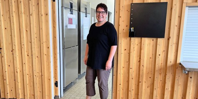 - Für mehr Sicherheit, das Holzstück auf ein Brett stellen, und nicht freihand schnitzen. Beim Schwein rundherum zuerst die Rinde auf ca. 2 cm Länge wegschneiden, siehe Bild. Diese Stücke aufbehalten. Anschliessend den Ast so weit anspitzen, bis der Rüssel des Schweins die gewünschte Grösse hat. Bei der Kuh lediglich den Rumpf analog des Hinterteils abrunden und die Rindenstücke von den in den Körper geschnitzten Flecken beiseitelegen.