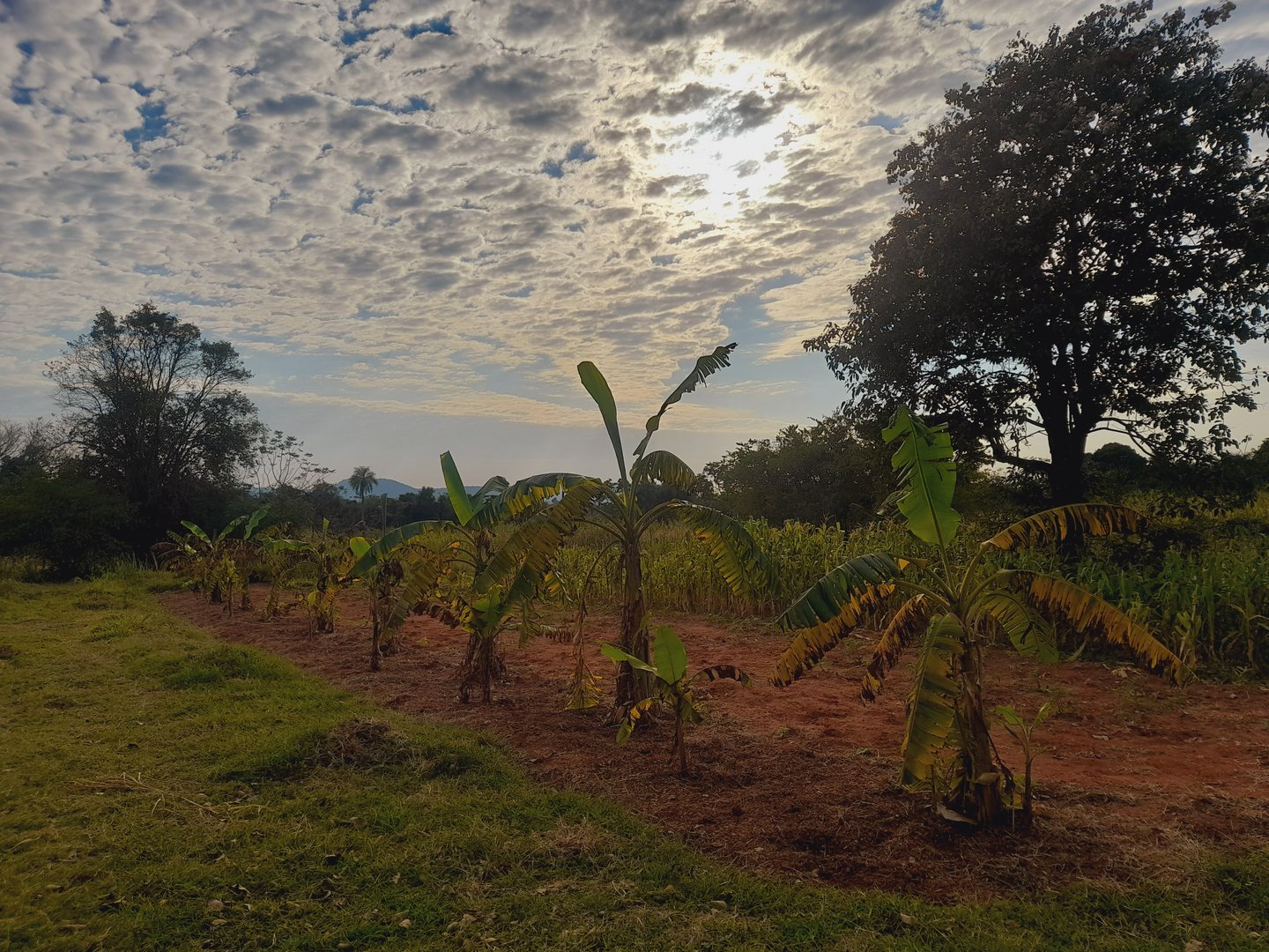 Einfach ein herrliches Leben. Und es breitet mir Freude, allen, die es interessiert, mitzuteilen, dass all unsere drei Zentimeter hohen Salatsetzlinge, Petersilie-Reihen, Schnittzwiebeln und Erdnüsse die Frosttage gut überlebt haben. Ohne jeglichen Schaden, während der Mais und die Bananen grosse Frostschäden erlitten. Und der bereits mannshohen Maniok wies sogar einen Totalverlust auf.