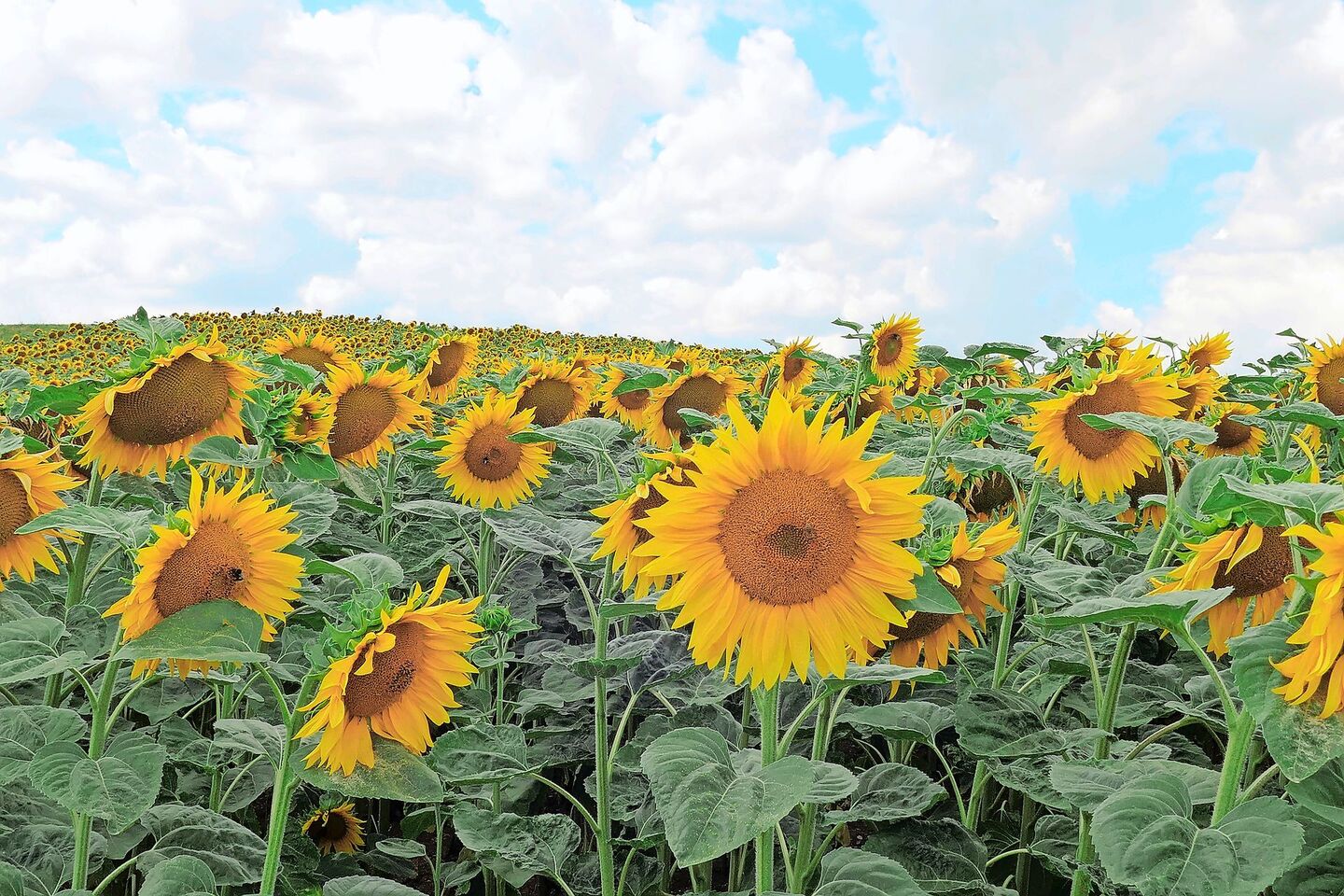 Ackerkulturen: Getreide und Sonnenblumen für Lebensmittelkanal, Futtermais