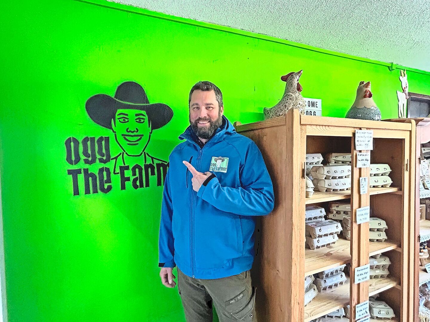 «Meine Passion ist es, Eier zu verkaufen. Das macht mich glücklich», sagt Philip Ogg (44) und zeigt auf den rustikalen Schrank im Hofladen, wo die Eierpackungen aufgereiht sind. «Die Konsumenten schätzen meine Eier und sagen, dass sie viel besser schmecken als jene Freilandeier, die sie beim Grossverteiler kauften.» Das führt er auf seine Haltungsform zurück.