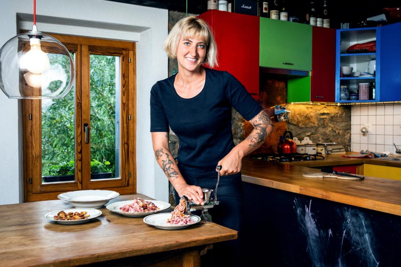 Die stark tätowierte TV-Köchin vereinigt unter dem Dach ihres gemütlichen Steinhauses alle Gegensätze. Sie mag das Traditionelle und die Folklore, singt im Jodlerchörli Alperösli in Sierre, spielt Akkordeon und fühlt sich mittlerweile als Exotin in der Stadt. Gleichzeitig rühmt sie die subkulturellen Qualitäten des Unterwallis und freut sich immer auf ein bisschen Ausgang in städtischen Gefilden, zum Beispiel, wenn sie mit ein paar hundert Kilo Aprikosen auf Direktvermarktungstour ist.