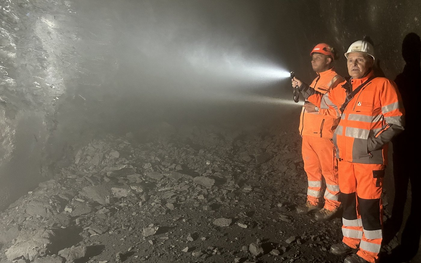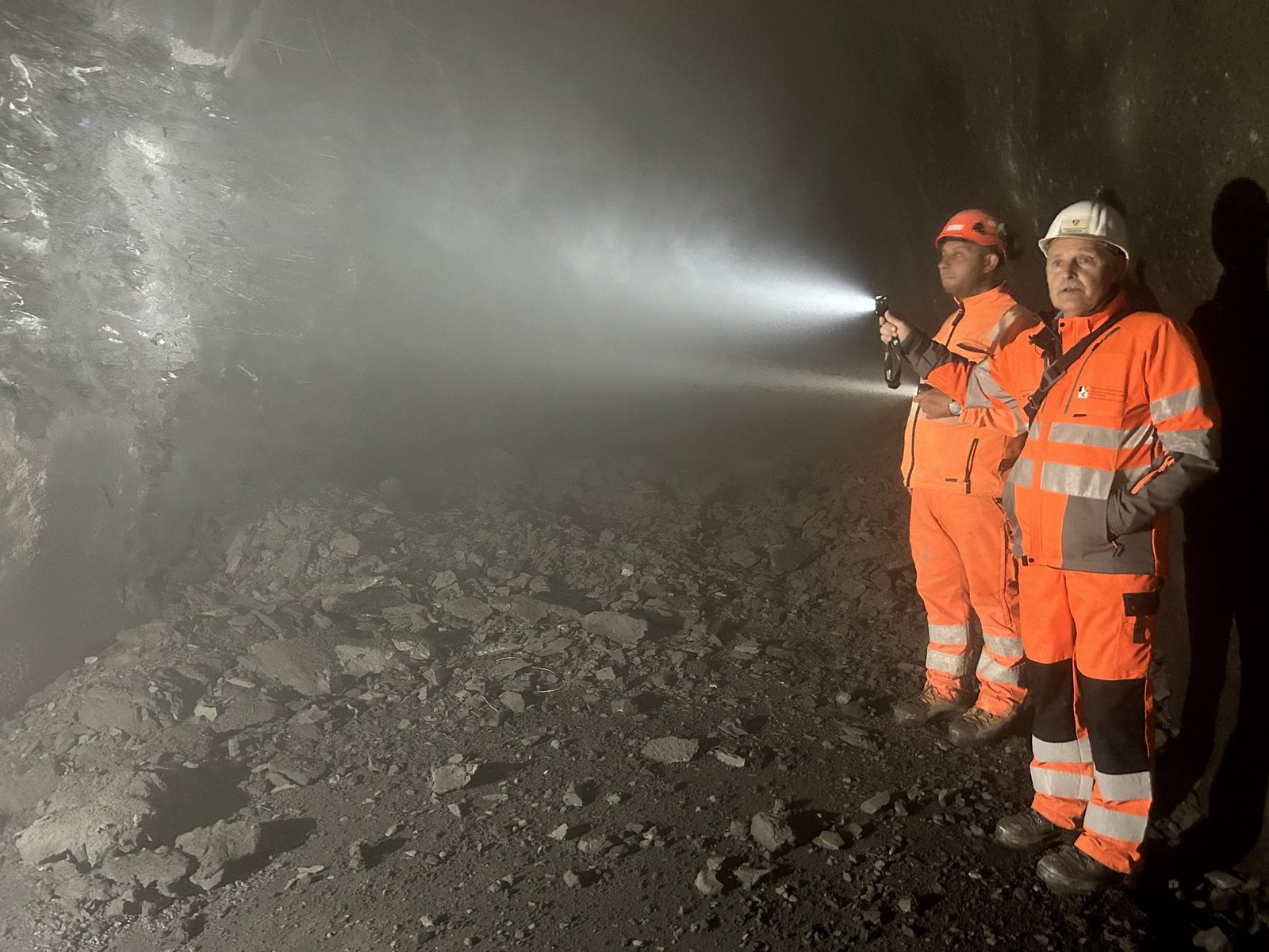 Der Mineur hornte einmal und dann noch mehrere Mal. Der Sprengmeister kurbelte und betätigte den Auslöser. Sekundenspäter ein grosser Knall, ein zweiter folgt und Staub verteilt sich im Sondierstollen. Diese Sprengung in den Berg konnten am Montag, 3. Juni, über 20 Medienschaffende aus einer Sicherheitsnische heraus verfolgen.