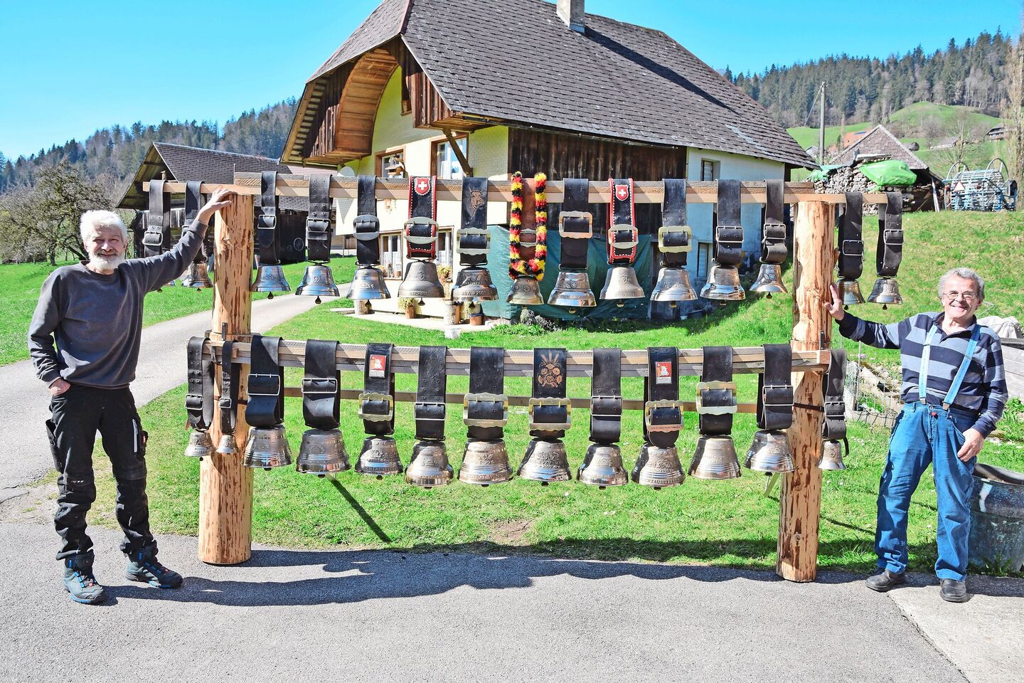 Der Reinzüchter Hanspeter Schütz freut sich schon jetzt, die Glocken wieder seinen Kühen anziehen zu dürfen. «Wir versuchen, daran festzuhalten», so der Landwirt. Für ihn sei jede seiner Glocken etwas Besonderes. Ein Unikat sei zum Beispiel diese Glocke, die er anlässlich der Sila 100 für seinen Stier erhalten habe. Nun zeigt Schütz auf eine kleinere Glocke. «Die da hat auch eine besondere Geschichte: Ich ersteigerte einmal an der Kemmeriboden-Auktion ein Rind. Das Rind, war das letzte Tier, das der damalige Kemmeriboden-Wirt Hans Gerber selig noch verkaufte», erzählt Schütz. Das Rind sei ein grosses, etwas grobes Tier gewesen. «Und geschielt hat es auch noch ein wenig», sagt er. Für 3200 Franken konnte Schütz das Rind damals kaufen. Unter den Käufern wurde dann eine Glocke verlost und er war der glückliche Gewinner. «Auf dem Abstammungsausweis des Rindes war als Züchter Hans Gerber und als Eigentümer die Familie Invernizzi, der heutige Name der Wirtefamilie des Kemmeriboden-Bades, angegeben», weiss er noch.