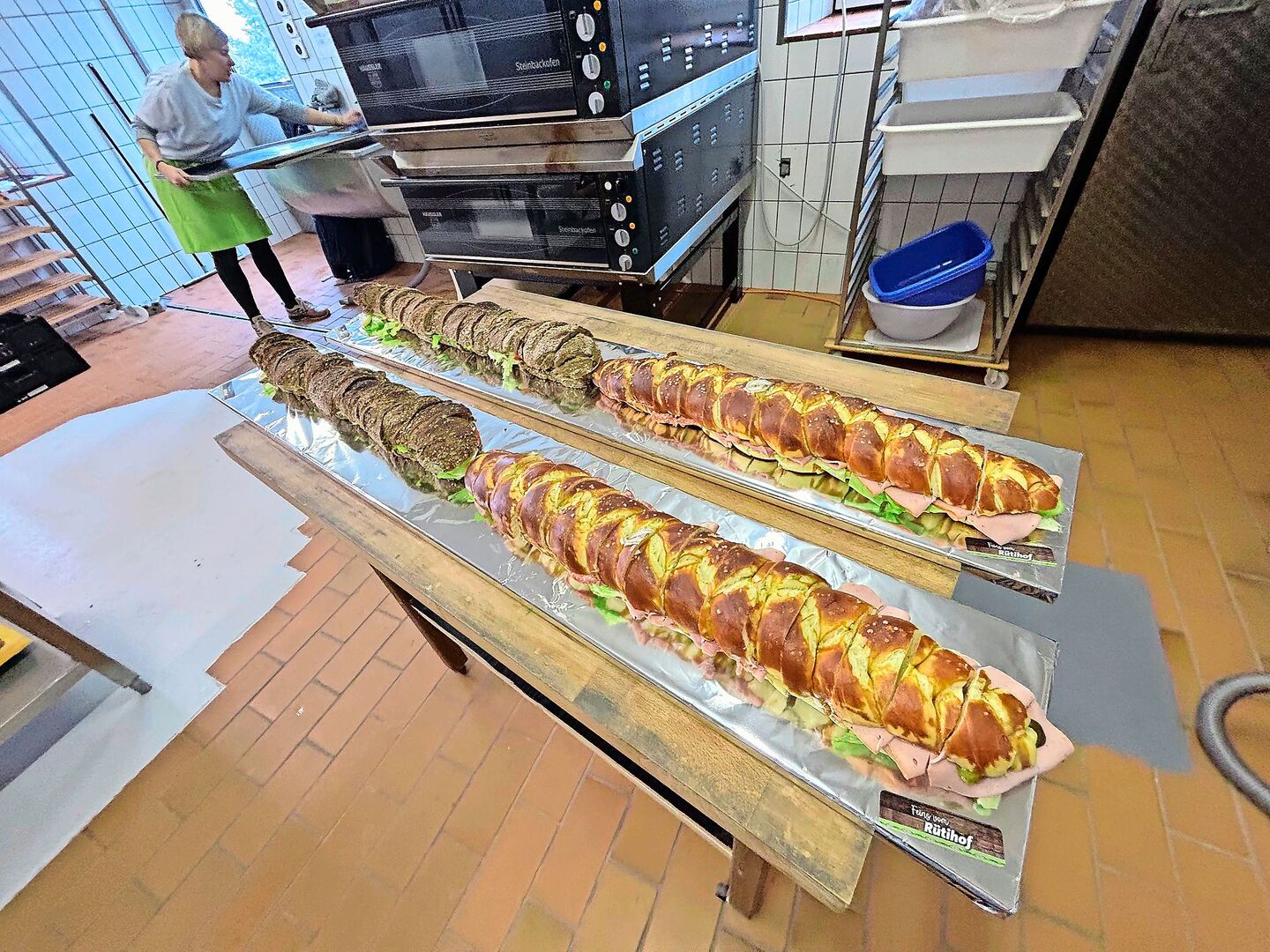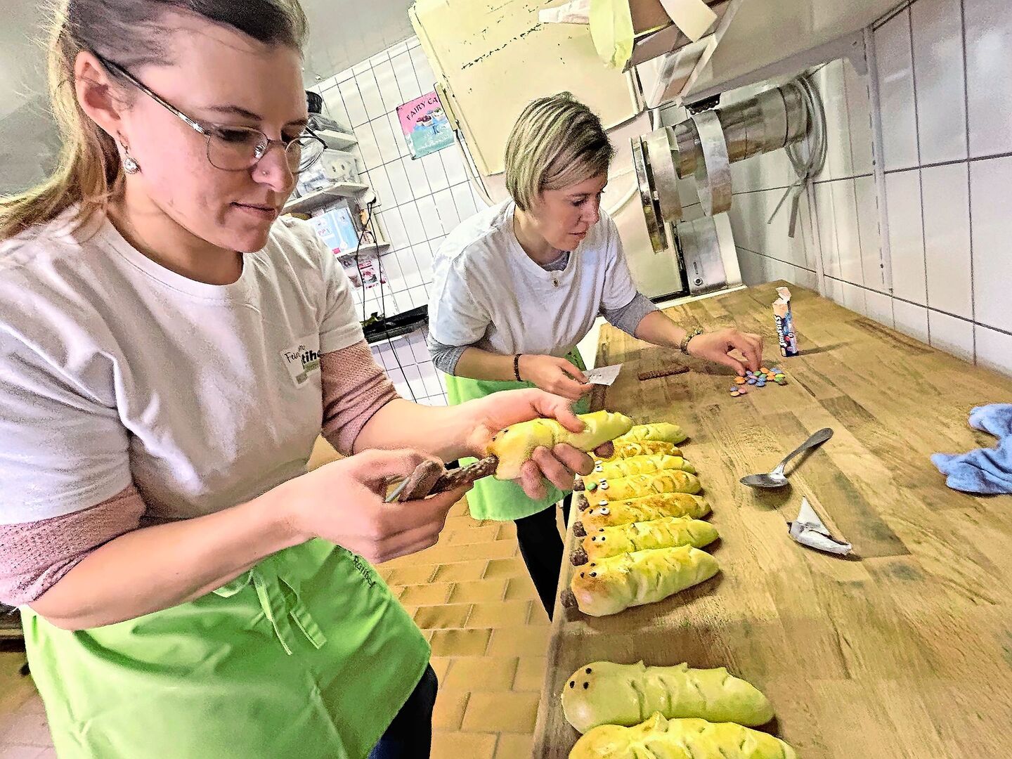 In der Backstube ist keine Sitzecke, nicht mal ein Stuhl – weder in dem dazugehörenden Lager noch in der Verarbeitungsküche. Kein Zweifel, die Zwillingsschwestern Jennifer und Vanessa (34) sind nicht zum Kaffeetrinken da. Flink, routiniert, ohne stressig zu wirken, backen sie seit dem frühen Morgen meterlange Sandwichbrote, Gebäck und eine Torte.