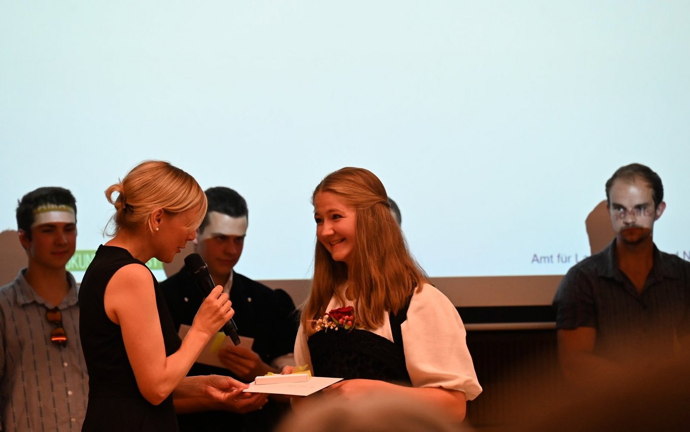 Karin Aeberhard, Leiterin Team Berufsfachschule drittes Lehrjahr Rütti, führte am Mittwoch durch die Feier. Sie untermalte ihre Worte mit Bildern von Störchen. Sie weiss genau, dass die Ausbildung kein Spaziergang war, es auch mal Diskussionen gab, sich die Lernenden vielleicht auch mal ducken und schlucken mussten, der Flug zwischenzeitlich etwas turbulent war. Aber auch das gehöre zur Ausbildung mit dazu.