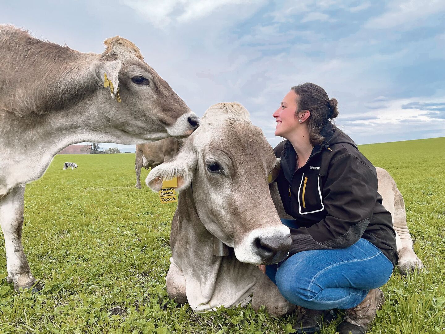 Julia ist gelernte Landwirtin, Besamungstechnikerin, absolvierte die Bäuerinnenschule und später die Agrotechnikerschule HF. Auf dem Betrieb ist sie vor allem für das Management der 70 Braunviehkühe zuständig, macht aber auch die Administration, besamt natürlich und hilft bei Arbeitsspitzen im auf dem Betrieb eingemieteten Lohnunternehmen ihres Onkels mit.