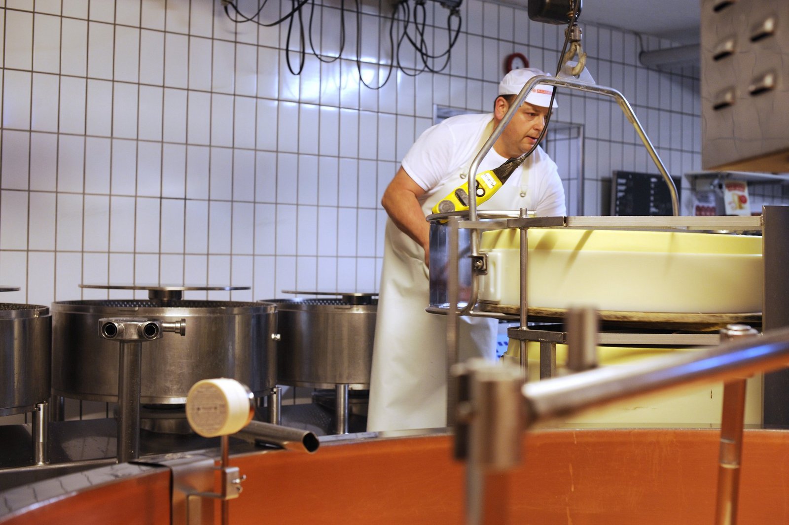 Alfred Schenk ist Betriebsleiter der auf rund 1000 Metern über Meer gelegenen Käserei Höhe. Der kleinste der Milchproduzenten, von denen nicht wenige Nebenerwerbsbetriebe sind, liefert gerade mal 35'000 kg Milch, der grösste rund 170'000 kg Milch pro Jahr. Gesamthaft liefern die 16 Milchproduzenten jährlich 1,6 Mio kg Milch. Kleine Betriebe bieten einige Vorteile, welche sich in der Käsequalität bezahlt machen, weiss Alfred Schenk. Milch, die direkt von den Bauern zweimal täglich eingeliefert werde, müsse weniger gepumpt werden. Betriebe, welche Milch zusammenführen, hätten mehr Faktoren, die schlechten Einfluss auf die Milch nehmen könnten, bis diese im Käsekessi gelandet sei. In kleinen Betrieben stehe zudem oft dieselbe Person am Käsekessi, was meist ausgeglichenere Partien und daher konstantere Ergebnisse bedeute.
