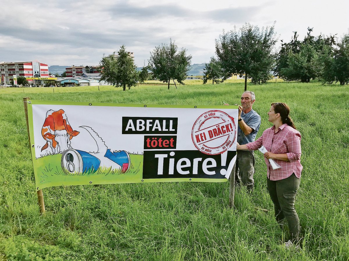 Auch Hella Schnider, Bäuerinnen- und Bauernverein Flühli-Sörenberg, hat negative Erfahrungen mit Abfall auf dem Feld gemacht. «Wir haben ein Feld direkt an der Strasse, dort kann man zum Teil alles finden, vom Kaffeebecher bis zum Portemonnaie.» Es gebe immer wieder Phasen, wo das Problem stärker auftrete, und in anderen weniger. In Sörenberg sei das Littering auch im Winter ein grosses Thema, wegen der vielen Skifahrer. «Aktuell sind es vor allem die Wanderer und Hundebesitzer, die ihre Abfälle oder Hundesäcke am Wegrand liegen lassen», berichtet sie. Sie habe die traditionellen Feldrandtafeln vom SBV auch aufgestellt, nimmt diese aber jeweils zeitweise weg, weil sich die Autofahrer daran gewöhnen würden. «Die Feldrandplache wird bei uns am Ortseingang von Flühli gestellt», berichtet Hella Schnider.