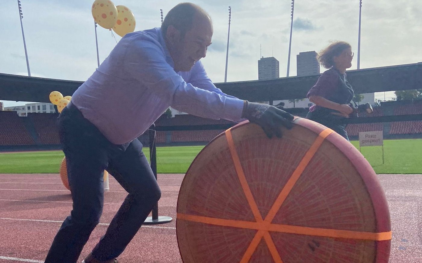 Ein Highlight des Tages soll die Einführung der neuen Sportdisziplin «Emmentaler AOP Rollen» werden. Hierbei gilt es eben, einen rund 100 Kilogramm schweren Käselaib durch einen Parcours zu rollen – dieser wird deutlich grösser sein als in Zürich und sogar über eine Drehscheibe und durch einen Tunnel führen.
