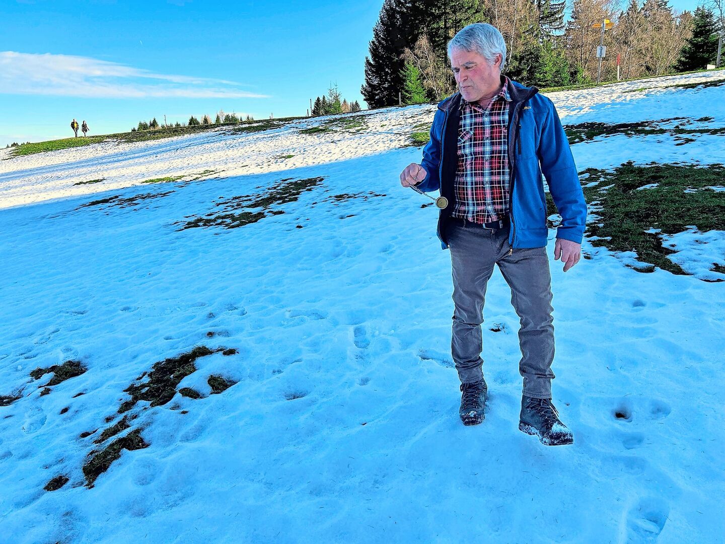 Johannes Bodenmann sagt von sich, dass er kein «Wasserschmöcker» sei. Er reagiere empfindlich auf Wasseradern und habe ein gutes Gespür. Quellen finde er mit einem Pendel, bestehend aus einer alten Taschenuhr – aber vor allem mit seinem Erfahrungsschatz und seinen Natur- und Topografiekenntnissen. Auf ihn ist Verlass – selbst bei Schnee ist der Quellensucher am Werk.
