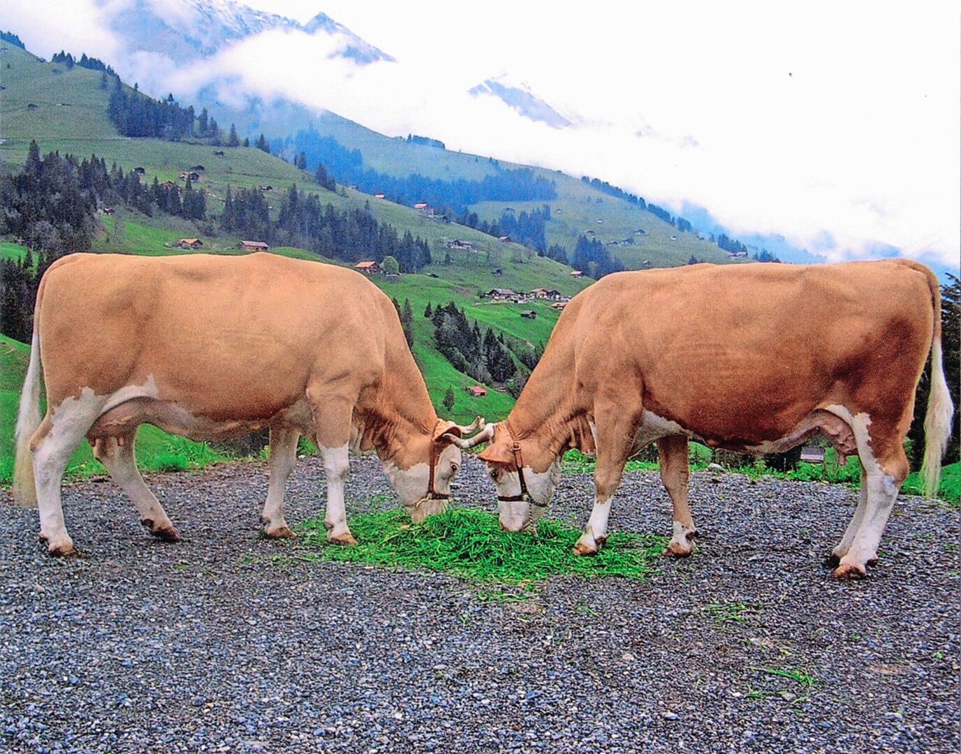 Als eine ihrer Kühe brünstig wurde, organisierte Konrad Klötzli einen Fuhrmann und fuhr mit der Fracht Richtung Gstaad BE. Mit einem alten Militär-Jeep und einer alten Viehbänne ging es zuerst das Tal hinunter Richtung Spiez BE, dann vier Kilometer nebendran wieder das Tal hinauf Richtung Gstaad und weiter nach Feutersoey BE – über 80 km war die Reise. «Das war schier eine Ewigkeit und als wir schliesslich fast nachts in Feutersoey beim Muni ankamen, mussten wir noch fast eine Stunde lang warten und zuschauen, bis der Stier unsere Kuh endlich decken wollte», sagt Kötzli und lacht noch heute über das Abenteuer. Hundert Franken habe ihn damals der Natursprung mit Alexander gekostet, dazu kam noch der Transport. «Äs schöns Chäubli hets dr führ nähr gäh», weiss er noch. Man sei halt in dieser Zeit ehrgeizig gewesen und man wollte nur das Beste für die Viehzucht.[IMG 6]