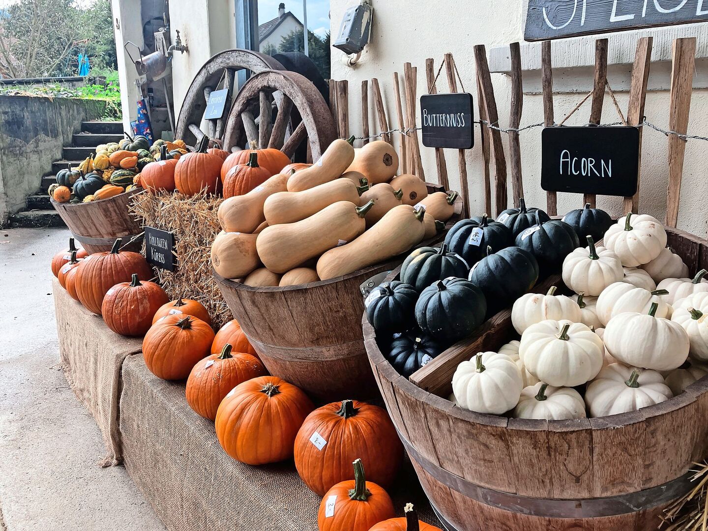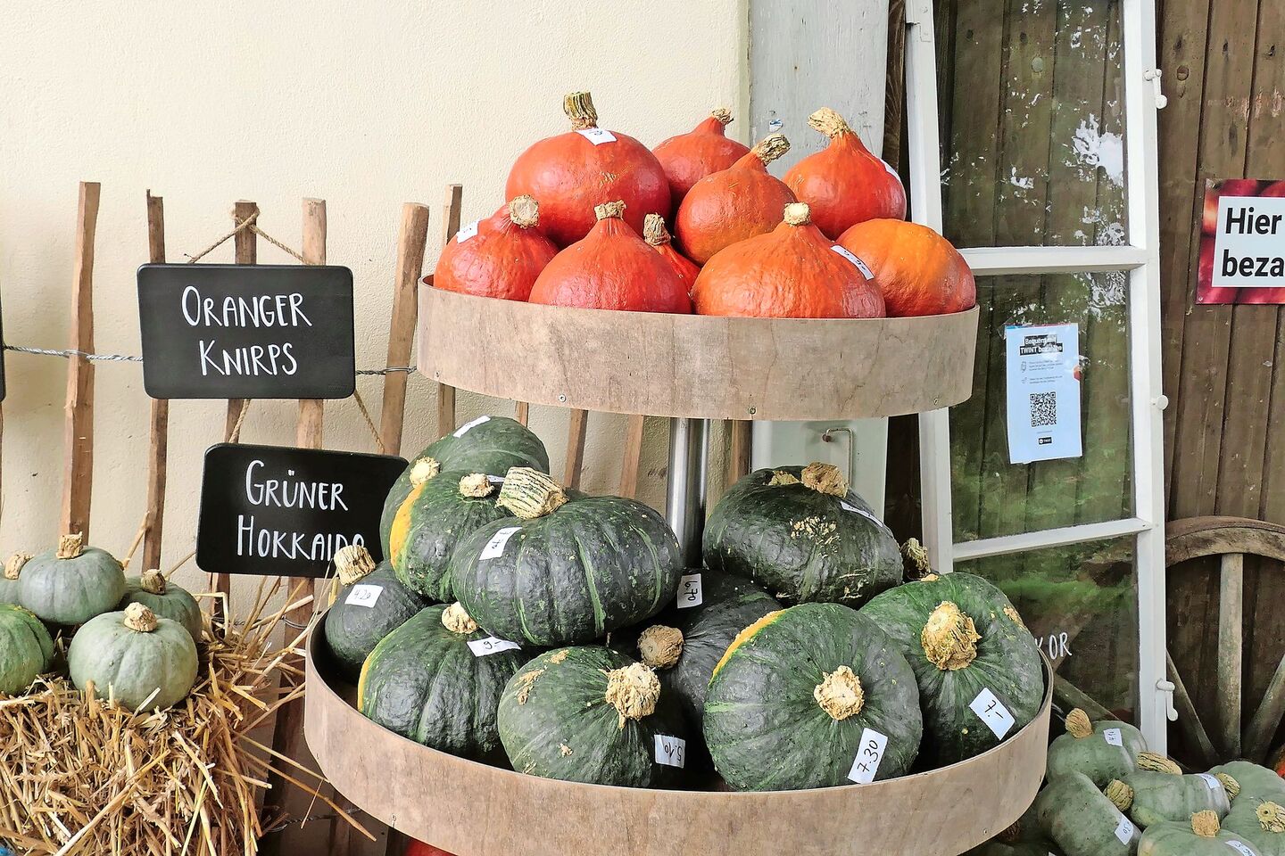 Orange in hellen und dunklen Varianten, weiss und in verschiedenen Grüntönen: Auf dem Hof «Zum Baumgarten» im schaffhausischen Guntmadingen spielen in dieser Jahreszeit Kürbisse die Hauptrolle. Dekorativ arrangiert und schön beschriftet, warten sie vor dem Bauernhaus auf Kundschaft. Ist jemand vor lauter Auswahl unentschlossen, hilft Jana Schwaninger gerne weiter: «Es macht mir Spass, über die Eigenschaften der verschiedenen Sorten aufzuklären und Tipps zum Kochen zu geben.»