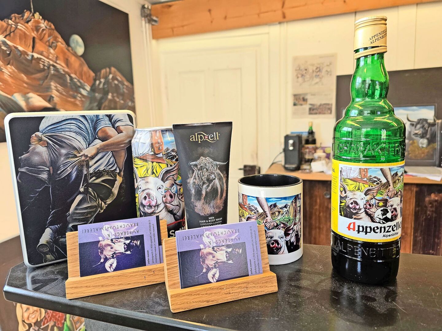 Was geblieben ist, ist seine Liebe zu den Holzmöbeln. Unter dem Namen «Enzig» – also einzig – erschafft er zusammen mit Bruno Inauen einzigartige Möbelstücke, die er mit seinen Kunstwerken bemalt. Seine detaillierten Kenntnisse des Appenzeller Brauchtums machen seine Bilder authentisch – und einzigartig. «Meine Bilder sind in der Regel Individuen, die ich gemäss Wunsch meiner Kunden erschaffe oder nach einer Idee, die ich habe», erklärt er. Für die Touristen werden die typischen Appenzeller Kunstwerke anderer Künstler oft auf diverse Alltagsgegenstände oder Postkarten gedruckt. Davon ist Manser nicht Fan. Seine Bilder leben vom Detail, von den einzelnen Härchen, die er der Appenzellerziege in stundenlanger Feinarbeit malt. Bei ihm erkennt der Bauer seine Hundertausender-Kuh, weil es eben nicht nur irgendeine hübsche Kuh ist.
