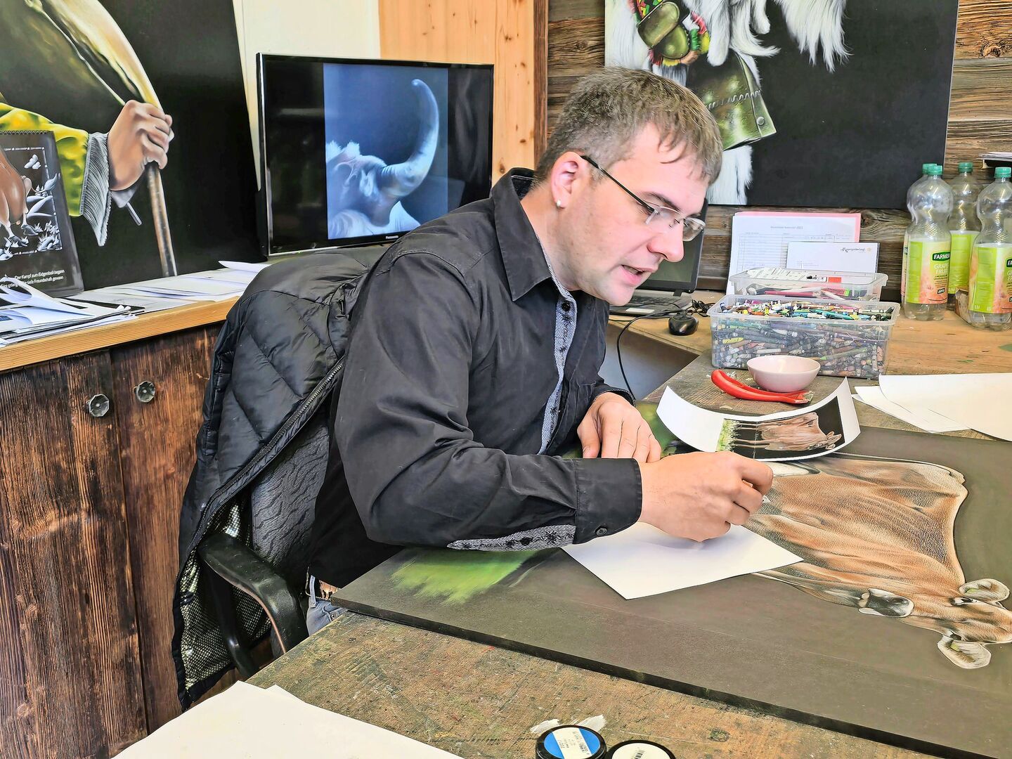 Jedoch fiel der kleine Stefan bereits in der Primarschule mit seinem Talent fürs Zeichnen auf. Und dem Hobby blieb er treu. Nach der Lehre arbeitete er zwar als Schreiner, malte aber daneben immer mehr Bilder. «Mit 26 Jahren war ein Punkt erreicht, dass ich so viele Aufträge hatte, dass ich mir ein halbes Jahr Auszeit nahm, um diese abzuarbeiten», erzählt er schmunzelnd und fügt an, dass er seither nie wieder als Schreiner gearbeitet habe. Seine Bilder sind so gefragt, dass er sich voll der Malerei widmen kann.