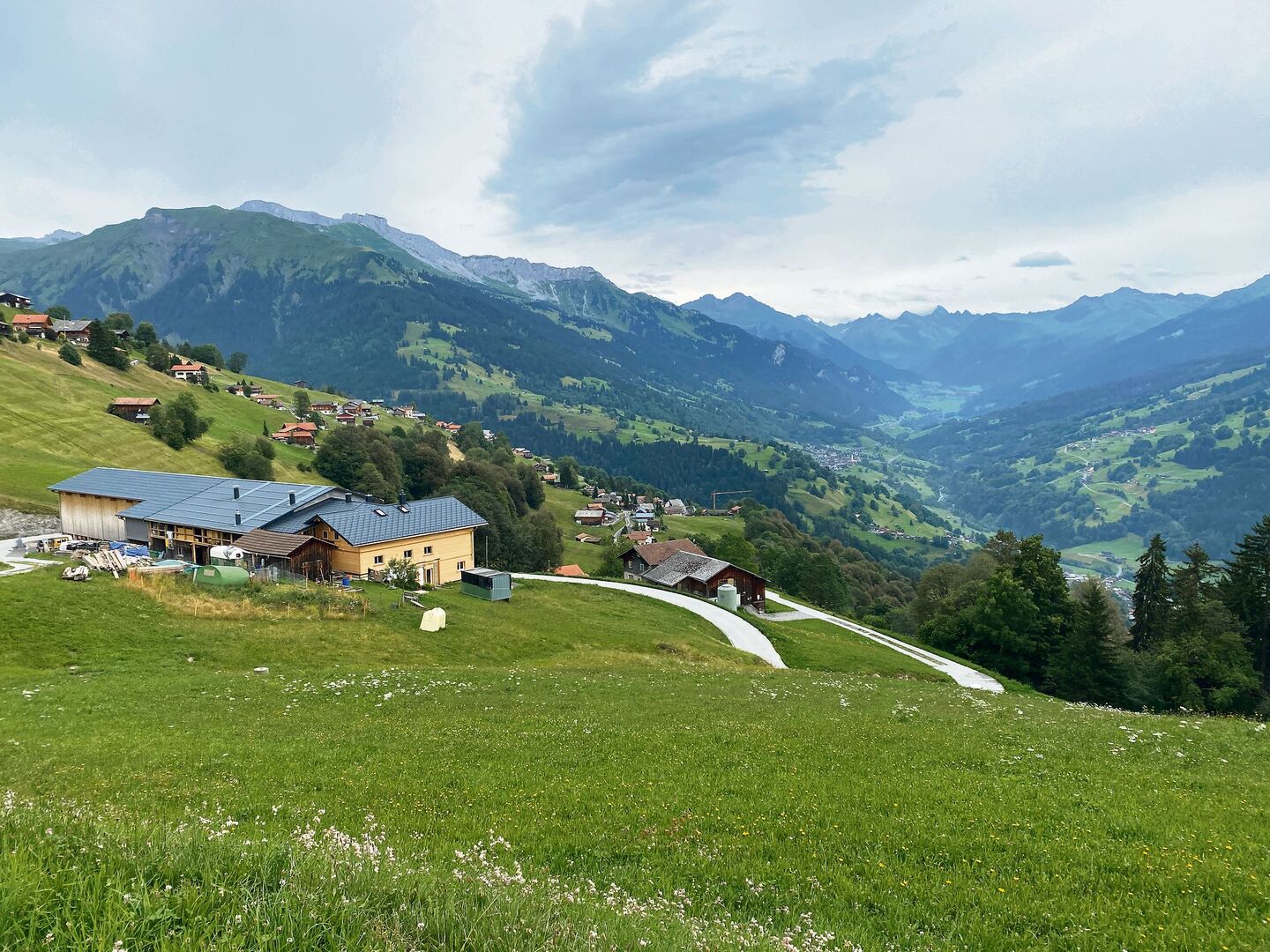 Ladina Lötscher nimmt zügig die Wäsche wieder vom Trockenständer vor der Tür, obwohl sie noch feucht ist. «So wird das nichts», sagt die Bäuerin und blickt zum Himmel, der erneut mit regenschweren Wolken verhangen ist. Dennoch sieht man vom Hof der Familie weit ins Tal.