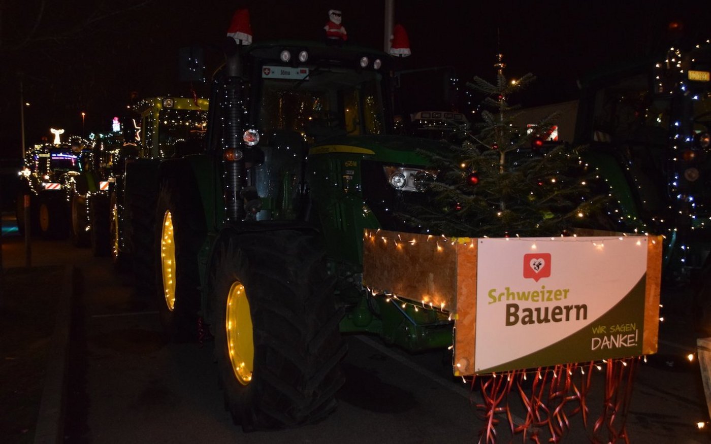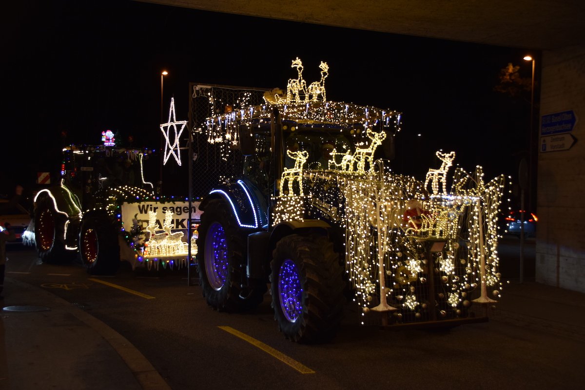 Obwohl es noch nicht Weihnachten ist, kam am Samstagabend in der Stadt Solothurn doch schon richtige Weihnachtsstimmung auf. Denn die 60 weihnachtlich geschmückte Traktoren, zauberten manchem Kind ein Leuchten in die Augen. Mit dieser Geste wollen die Bauern Danke sagen. Danke, dass die Bevölkerung ihre Produkte kaufen und Danke, dass die Konsumentinnen und Konsumenten die Arbeit der Landwirte schätzen.