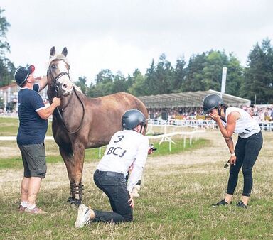 Die Verbindung von Carola Spring mit Xavier Juillard hat auch für die Freibergerszene eine gewisse Bedeutung. Beide kommen sie aus bekannten Züchterfamilien. Bruno Spring, Jeuss FR, hat sich als Präsident der Interessengemeinschaft zur Erhaltung des Original Freiberger Pferdes (IGOFM) der Unterstützung der Basispferde (max. 2 % Fremdblut) verschrieben. Aus seiner Zucht, die stark von seiner Familie mitgetragen wird, geht auch der aktuell letzte noch lebende Hengst mit null Prozent Fremdblut hervor. Condor steht im Besitz des Schweizer Nationalsgestüts in Avenches VD und war heuer bei Albert Kuster im Kanton Thurgau stationiert.[IMG 2]