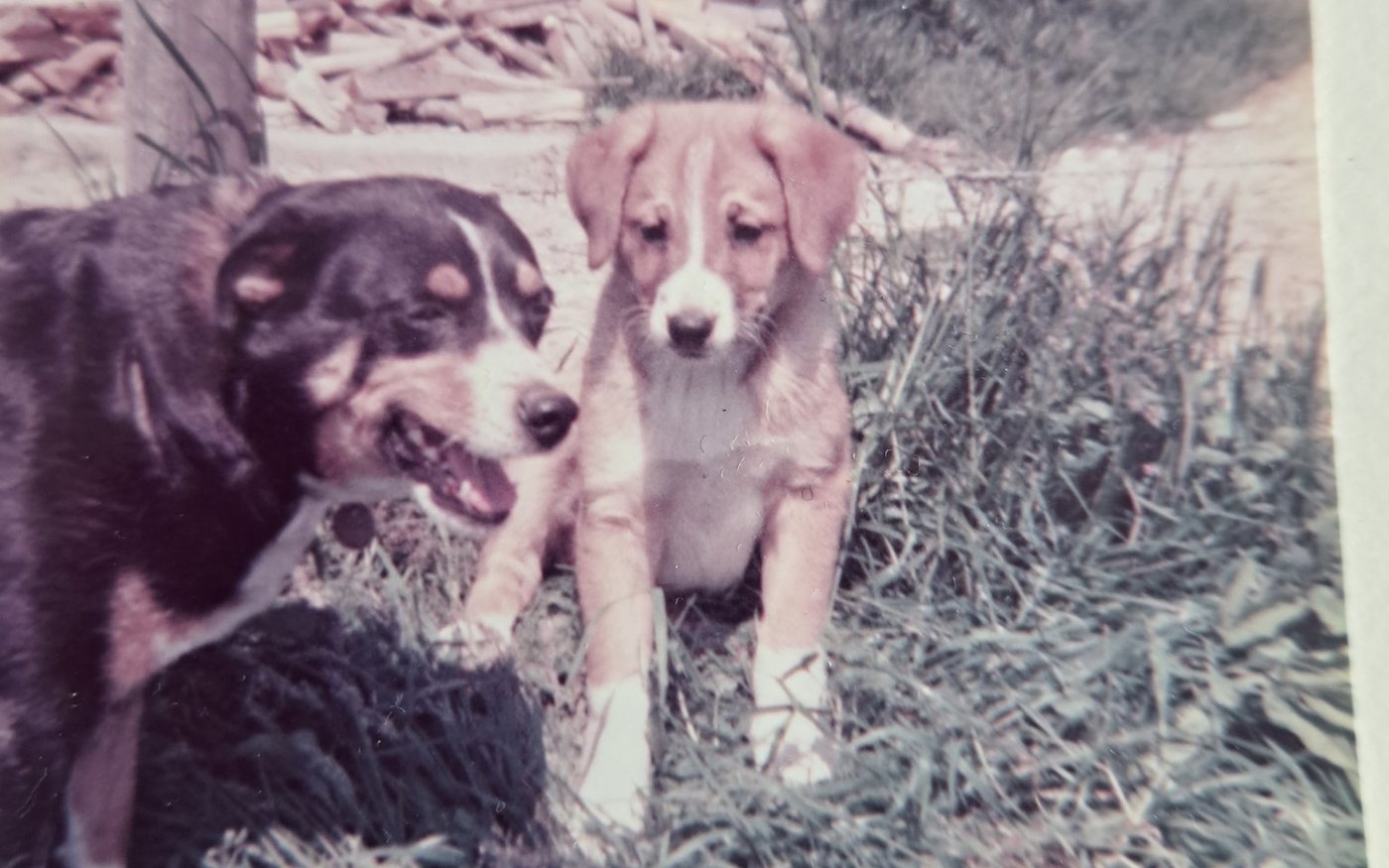 Unsere Appenzeller Sennenhündin Frischli stammte aus Bütschwil im Kanton St. Gallen. Meine Schwester brachte sie als Welpe nach den Ferien bei unserer Tante als Geschenk mit nach Hause. Frischli mit ihrem Welpen fotografierte ich im Jahre 1970 auf dem Hof Flühlen in Luthern, wo mein Vater von 1963 bis 1979 eine Pacht bewirtschaftete.