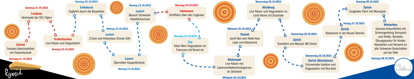 Bei der Ankunft am Ziel möchten Sie den Käse teilen und ihn an alle Schweizer Botschaften auf der Welt verschicken. Was steckt dahinter?