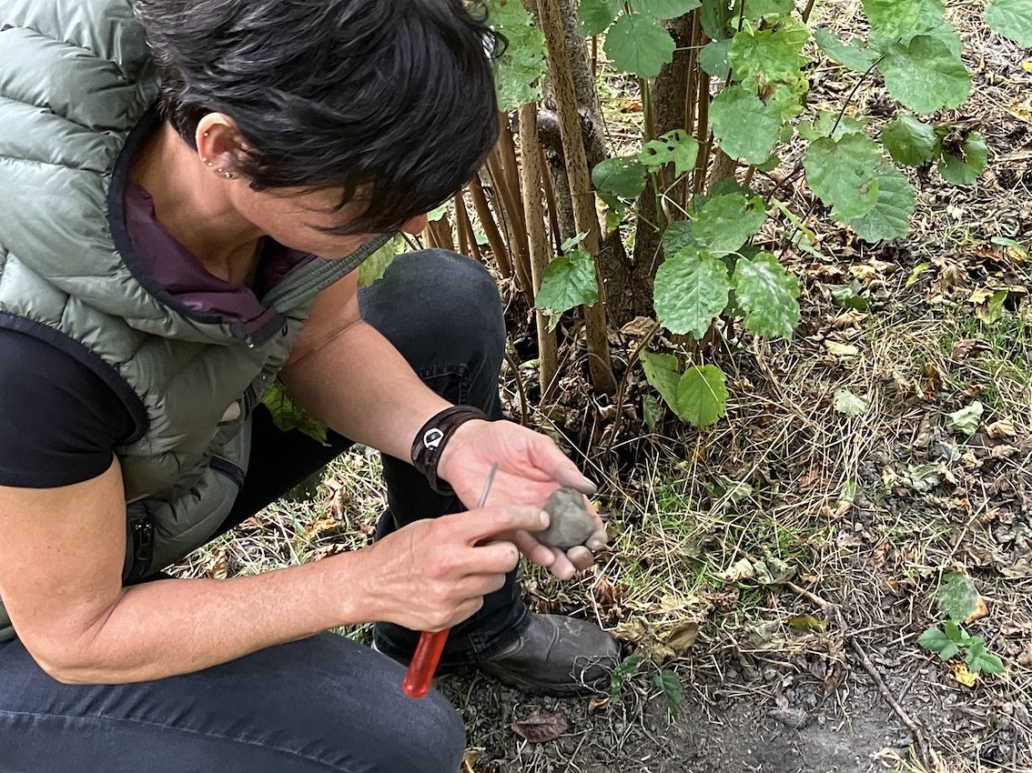 «Wir wussten allerdings, dass es lange dauern würde, bis sich die ersten Früchte, also Trüffel, entwickeln würden», sagt Bisaz. Und um diese überhaupt zu finden, braucht es einen Hund. Den hatten sie bereits mit Indy, einer heute 11-jährigen Hündin der Rasse Berger de Pyrénées. Um den Hund an den Geruch zu gewöhnen und die Suche danach zu trainieren, hätten sie Trüffelstücke versteckt. Zu Beginn in der Wohnung, später auch im Freien. Das habe recht schnell geklappt. Doch in der Plantage, die inzwischen seit sechs Jahren bestand, habe Indy nie etwas gefunden. «Irgendwann stellte sich die Frage, ob es da überhaupt Trüffel gibt.» Um dies zu überprüfen, musste ein erfahrener Trüffelhund her. Und siehe da: Dieser fand tatsächlich einige der begehrten Knollen. «Interessanterweise klappte es ab dann auch mit unserer Hündin», so Bisaz. «Heute ist sie eine routinierte Trüffelschnüfflerin.»