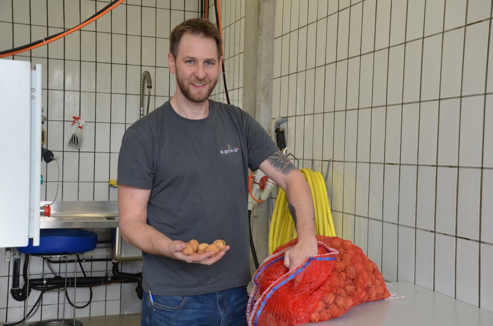 Christoph Gämperli, Geschäftsführer der St. Gallischen Saatzuchtgenossenschaft, schildert rückblickend die Anfänge der Nussölproduktion: «Wir wollten unbedingt ein Nussöl aus einheimischen Nüssen produzieren. Als wir eine Ausschreibung lancierten, in der wir lokale Nussproduzenten suchten, waren wir angenehm überrascht, dass sich rund 200 Personen meldeten. Manche hatten nur einen oder zwei, drei Nussbäume.»