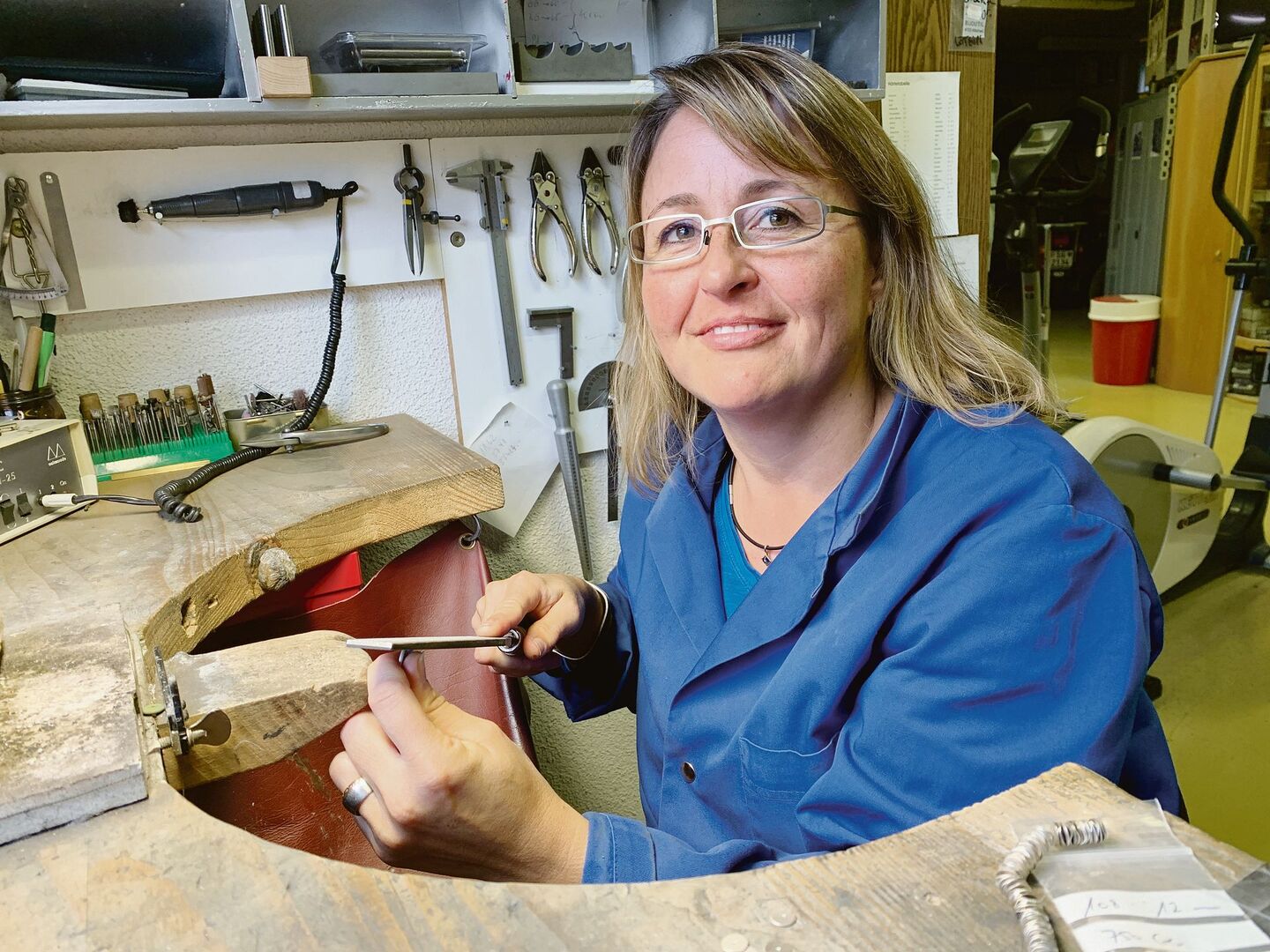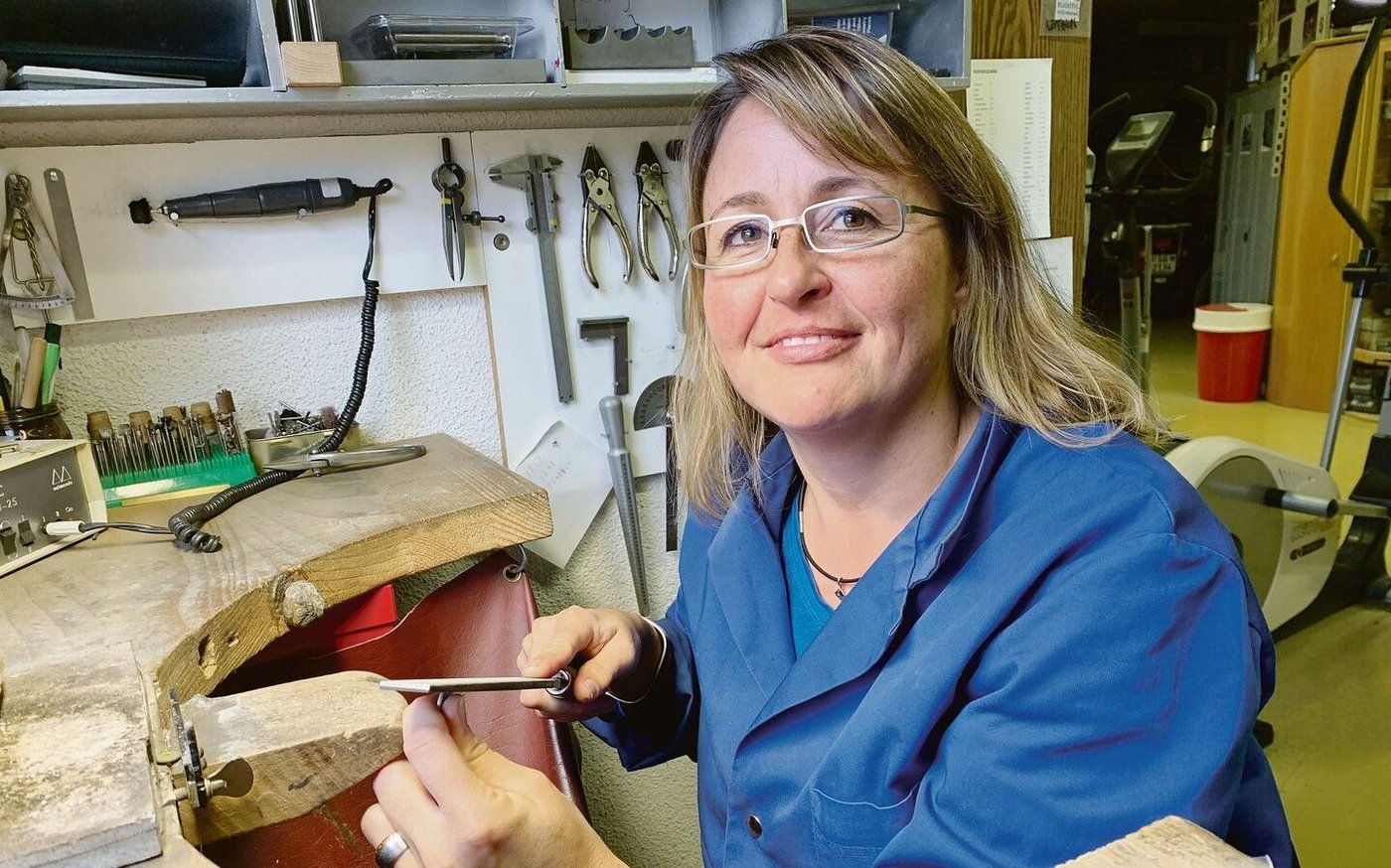 Das Goldschmiedeatelier, in das sich Monika Lehner (43) immer am Mittwoch zurückzieht, ist auch noch die Werkstatt und der Fitnessraum ihrer Eltern. Monika Lehner ist in Wil aufgewachsen und für sie hat ihr Vater damals, als sie in der Lehre zur Goldschmiedin war, diesen Raum eingerichtet. «Es ist einfach schön, für einen Tag zurückzukommen und hier in meinem alten Atelier zu arbeiten, mit den Eltern zu Mittag zu essen und meiner Kreativität zu frönen, ohne dass ich dauernd an die Arbeiten auf dem Hof denken muss», sagt sie.