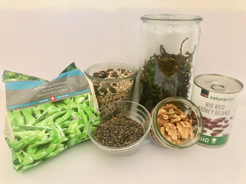 - versuchen, tierische Porteine mit pflanzlichen Nahrungsmitteln mit hohem Proteingehalt (z. B. Hülsenfrüchte und Nüsse) zu ersetzten.