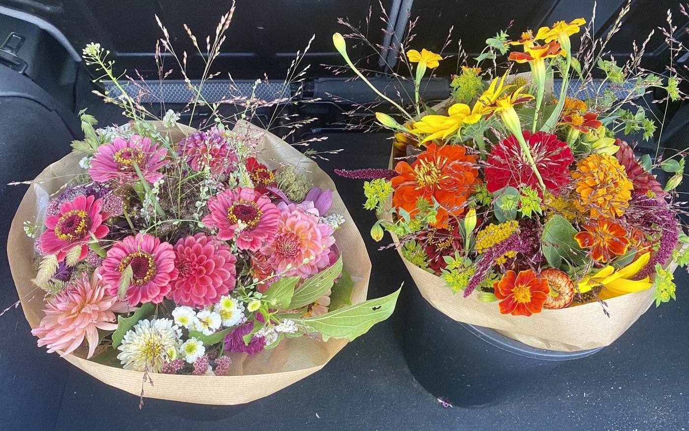 Während Susanna Brönnimann ihn ihrem ersten Blumenfeld-Jahr viel über den Anbau lernte, legte sie im zweiten Jahr den Schwerpunkt der Weiterbildung auf die Floristik. «Ich besuchte Kurse bei Menschen, die sich in der gleichen Blumenwelt bewegen wie ich: mit saisonalen, standortgerechten (Bio-)Pflanzen und nachhaltigen Verarbeitungsarten, ohne Plastikverpackungen oder Steckschaum.»