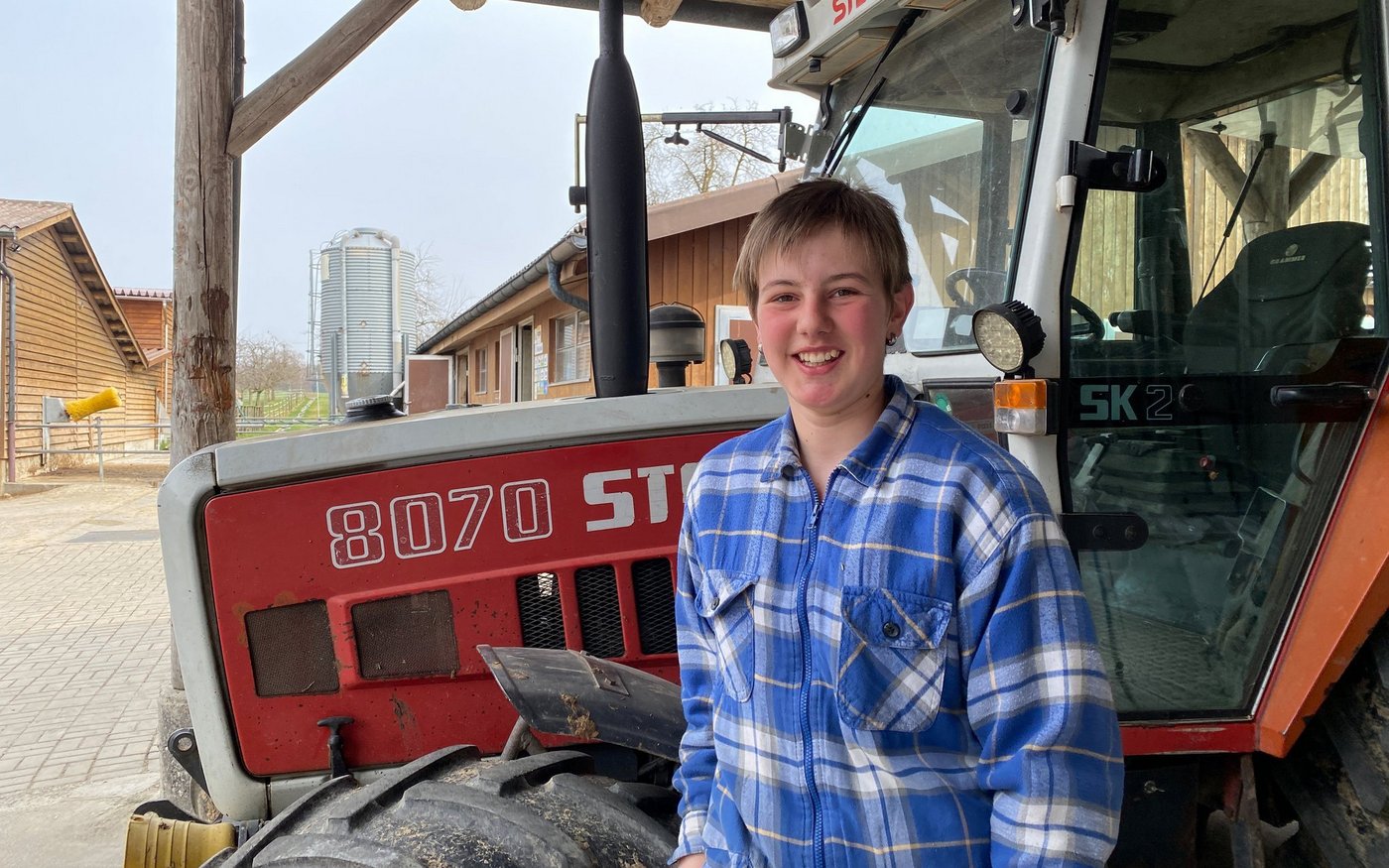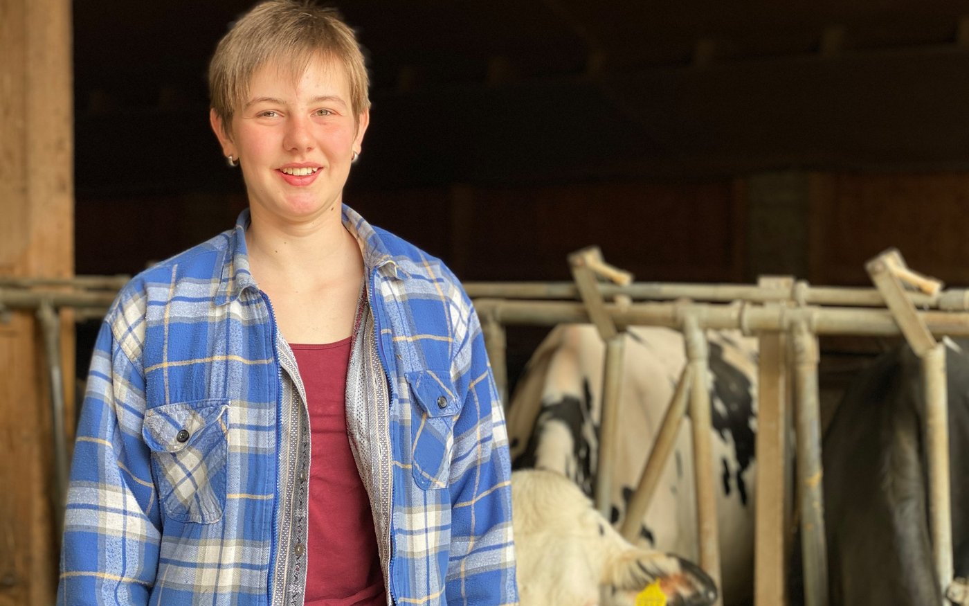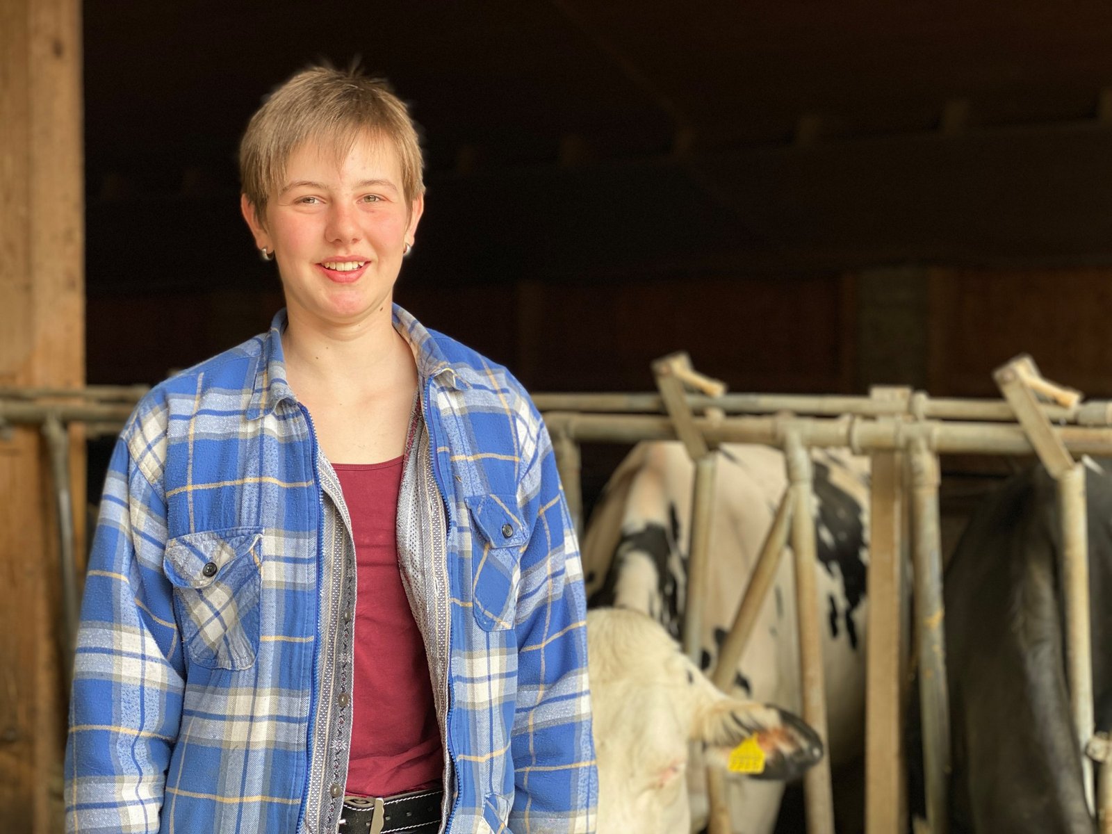 Nadia Schättin wusste schon als kleines Kind, dass sie Landwirtin werden will. Zuhause hat ihre Familie zwar keinen Landwirtschaftsbetrieb, aber einen grossen Umschwung mit Hühnern und Eseln. Später half sie oft auf dem Bauernhof ihres Göttis mit. Bei der Tierhaltungsgemeinschaft von Familie Engeli und Habegger in Friltschen TG macht sie nun ihr erstes Lehrjahr. Auf dem Milchbetrieb mit Mostobst, Beeren, Ackerbau, Schweinehaltung und Direktvermarktung fühlt sie sich wohl: «Ich habe wirklich einen guten Lehrbetrieb gefunden,» sagt sie erfreut.