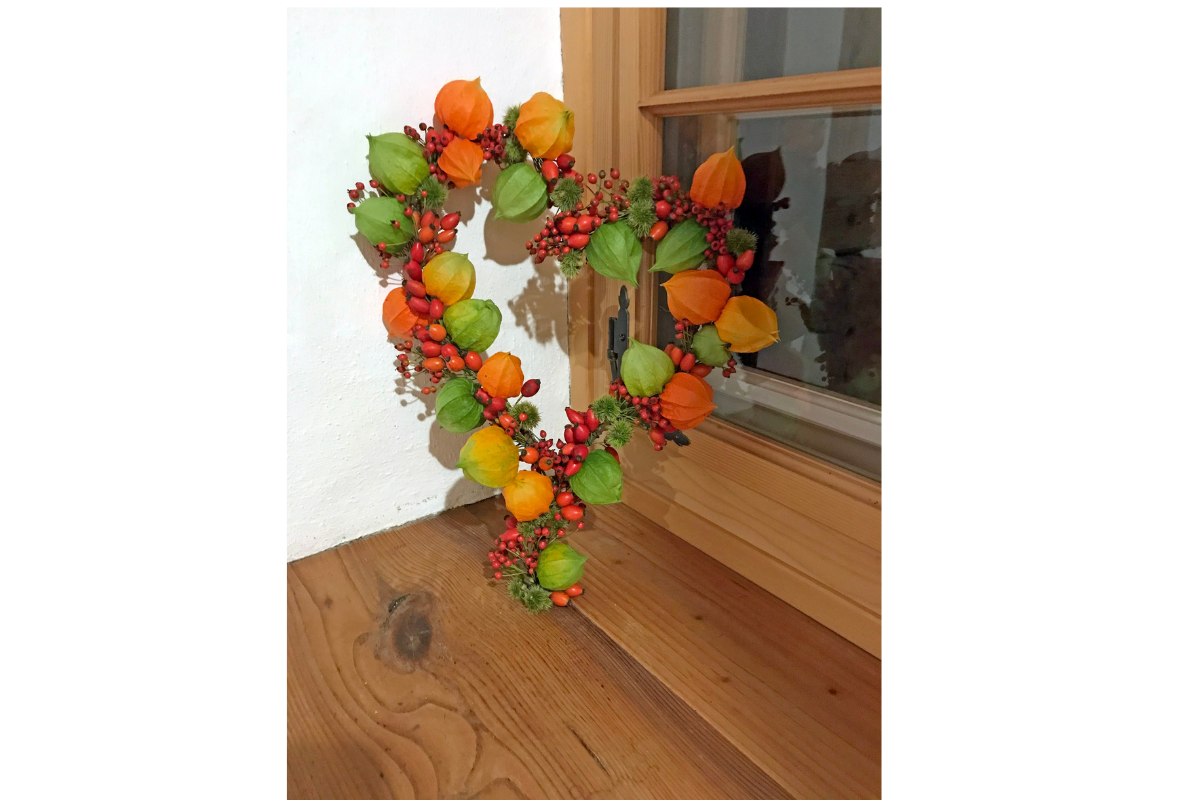 Im Herbst endet meist die Zeit der bepflanzen Blumenkisten. Als Alternative bieten sich Trockenkränze und andere Dekorationen an, die vor allem drinnen Freude machen. Im Winter, wenn die Welt weniger farbig ist, könnten geschmückte Winter-Blumenkistli wieder eine Idee sein.