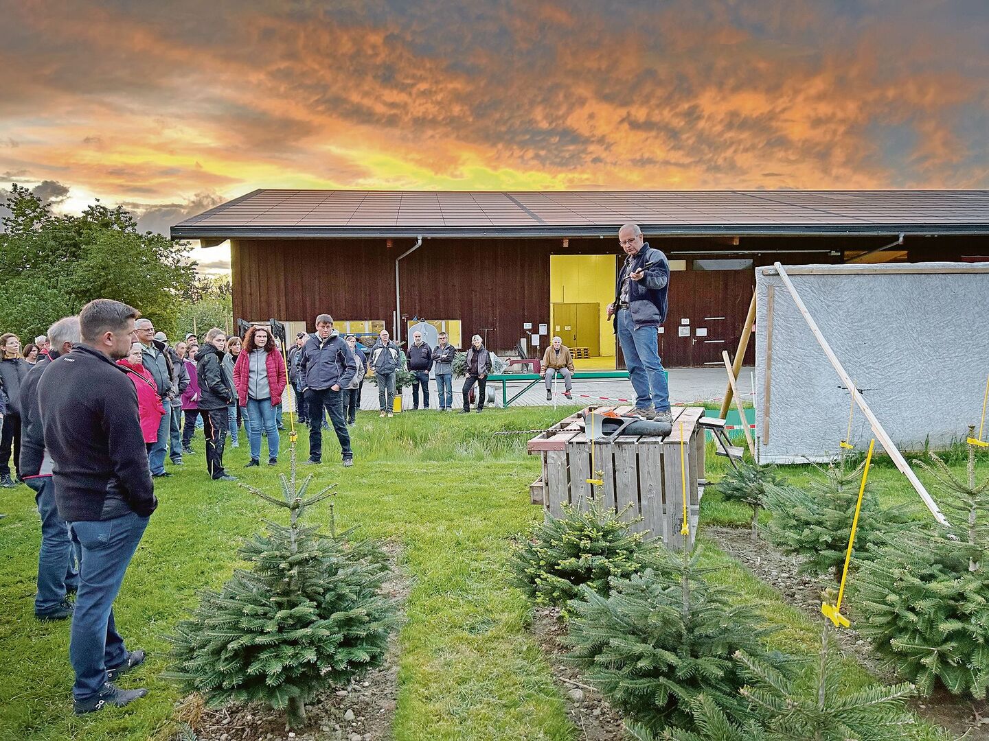 [IMG 2] Urs Ogg, der Seniorchef der Ogg-Farm, stellte den Produktionszweig Christbäume vor. Dort holt die Ogg-Farm das Beste heraus. Wer glaubt, das gäbe vor allem vor Weihnachten Arbeit, sah sich getäuscht. «Der Frühling bis Ende Juli ist auch für die Christbaumkulturen eine intensive Zeit», so Ogg.