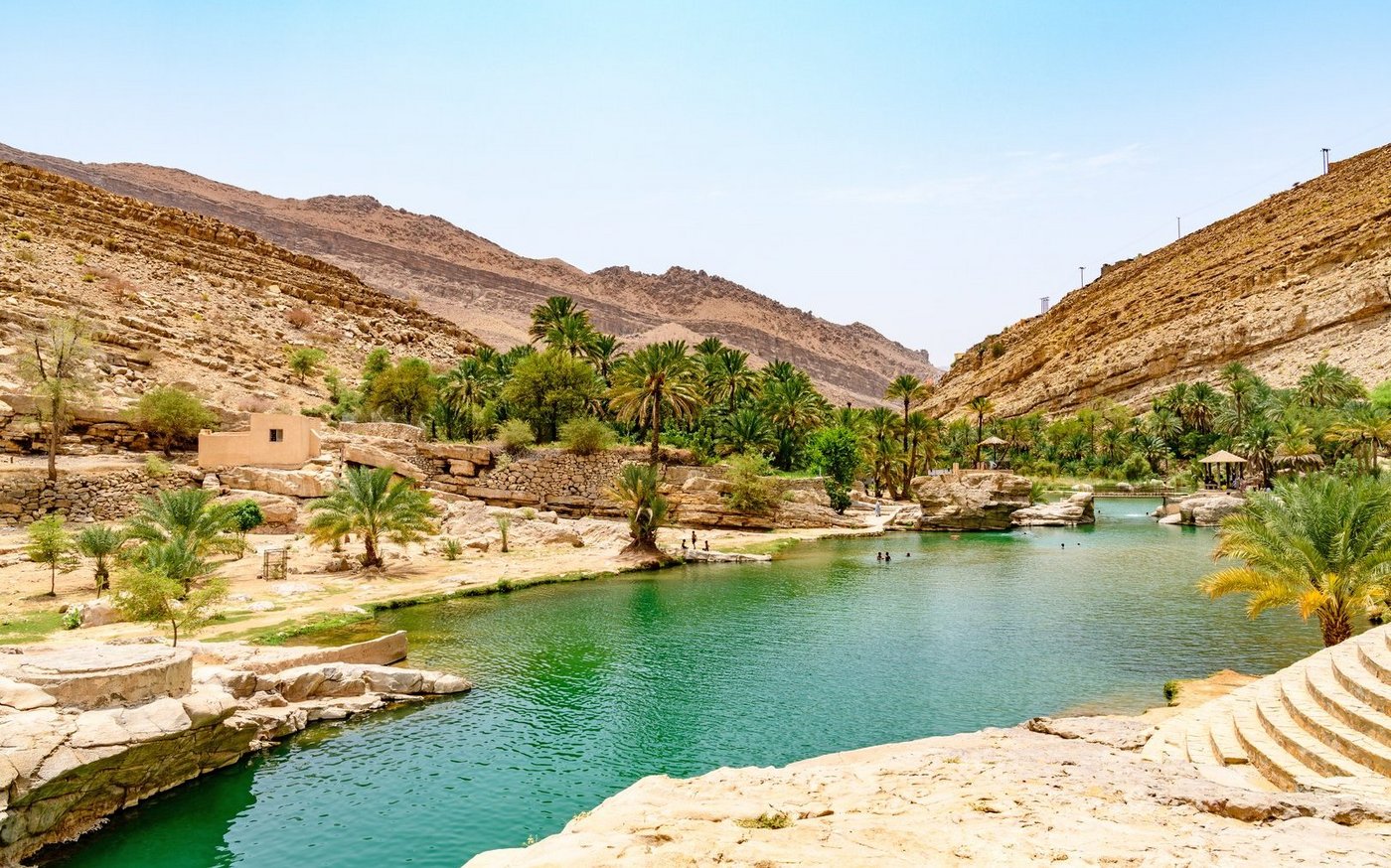 Frühaufstehern empfehlen wir heute den Aufstieg auf die Dünen, um den einmaligen Sonnenaufgang zu geniessen. Sie verlassen die Wüste und fahren an die Küste nach Sur, der Legende nach Heimatort von Sindbad dem Seefahrer. Dort besuchen Sie eine traditionelle Dhau-Werft. Sie ist die letzte ihrer Art auf der Arabischen Halbinsel. Eine Dhau ist ein traditionelles Holzboot, das früher zum Fischfang und Handel eingesetzt wurde. Sie hatten vor allem im Roten Meer und im Indischen Ozean ihre Heimat. Anschliessend Fahrt nach Wadi Tiwi, auch bekannt als das «Wadi der neun Dörfer». Es ist eines der beeindruckendsten Wadis im Oman. Gelegen an der Küste des Golfs von Oman, bietet dieses Wadi eine Mischung aus smaragdgrünen Pools, steilen Klippen und üppigen Palmenhainen. Das Tal ist berühmt für seine idyllische Landschaft und die traditionellen Dörfer, dichten Plantagen mit Bananen-, Mango- und Feigenbäumen. Spaziergang durch das Dorf und Fahrt tiefer in die Berge, um die traditionelle Lebensweise der Bevölkerung kennenzulernen.
