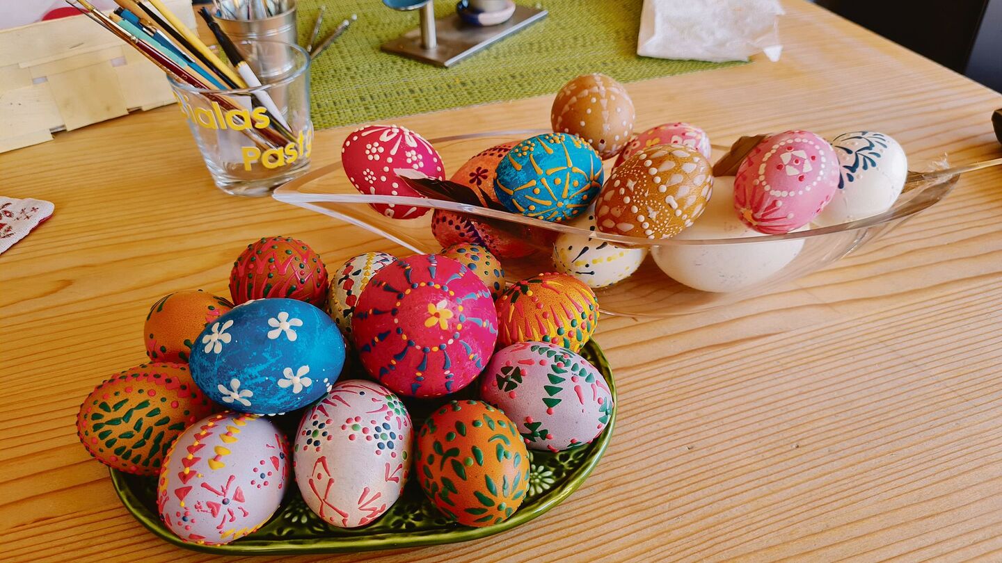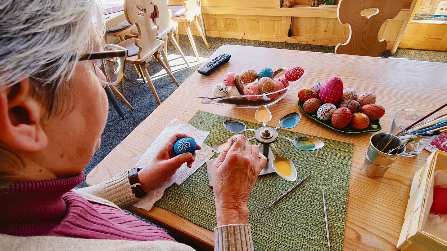 Eine Sendung über die nationale Minderheit der Sorben inspirierte Annamaria Pfister dazu, selbst Ostereier nach sorbischer Tradition zu bemalen. Wie ihre Kostüme, ihre Sprache und Musik gehört auch das Ostereierdekorieren zur sorbischen Kultur. Dies faszinierte die kreative Wirtin, die immer wieder neue Herausforderungen sucht. So begann sie, im Internet zu recherchieren, wie die Sorben ihre Eier dekorieren. Es gibt verschiedene Techniken und oft werden diese auch vermischt. «Der Fantasie sind keine Grenzen gesetzt und ich lerne am liebsten beim Tun», erklärt Annamaria Pfister.